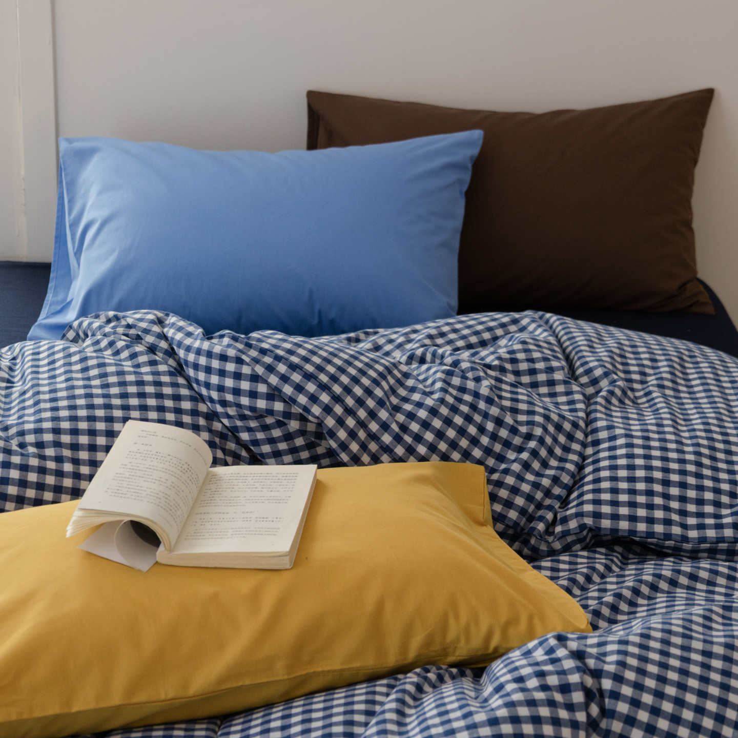 当前位置: 91家纺网 > 商品网购 > 床品套件 > 四件套 > 水洗棉四件套 > 艾沁家纺 2026新款全棉色织水洗棉格子条纹混搭四件套 佛罗伦萨-枕套(天真蓝+巧克力)