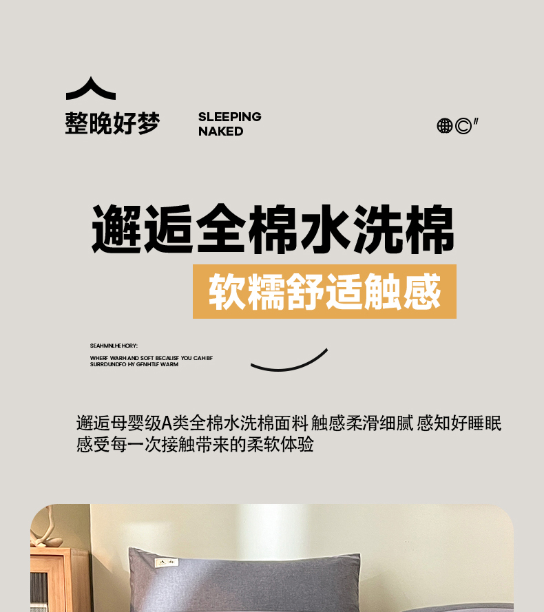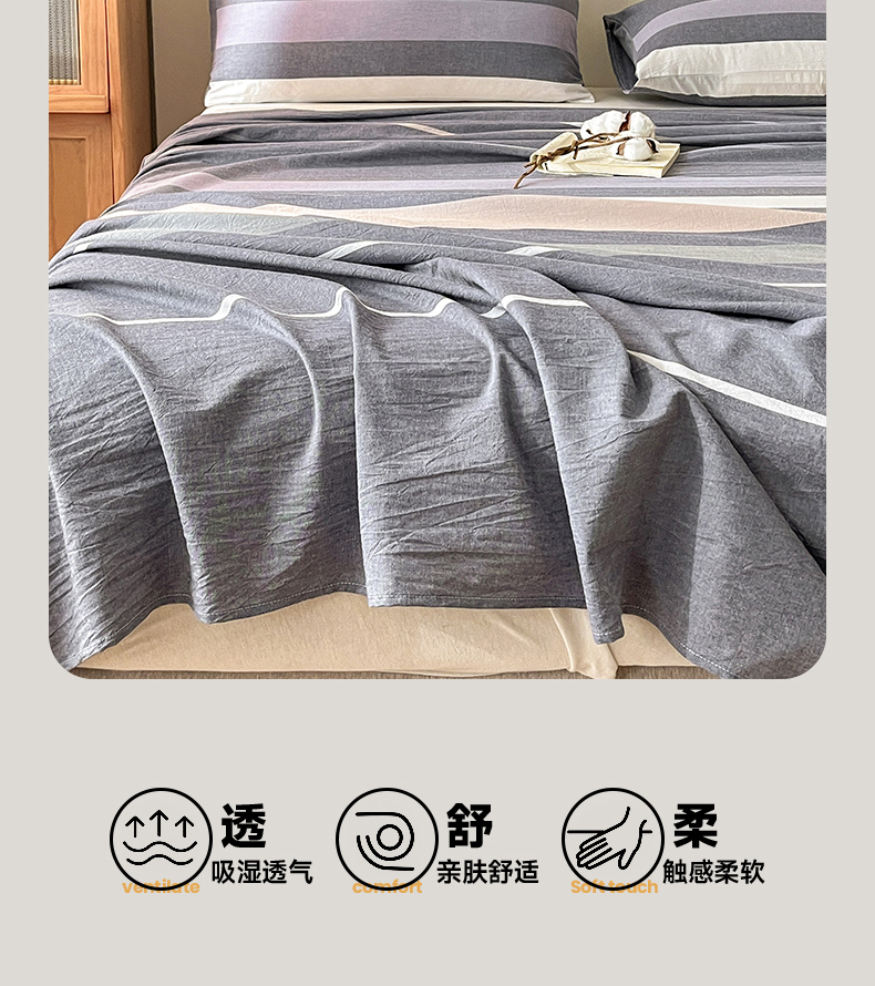 • 91家纺网 家纺一手货源 找家纺 21度C 2026新款A类全棉水洗棉母婴级床单 米拉条