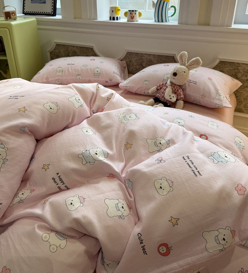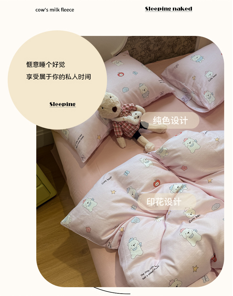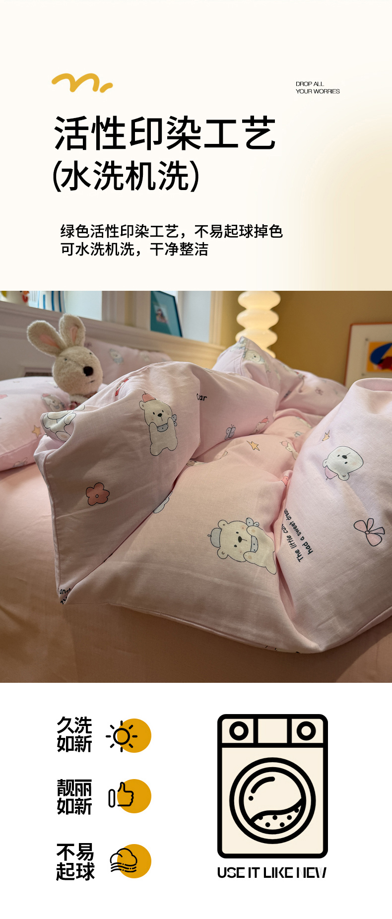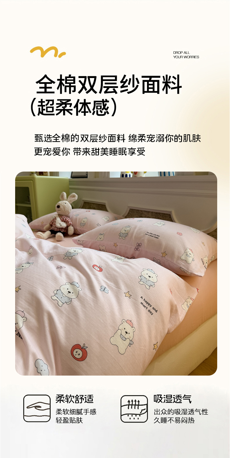 当前位置: 91家纺网 > 商品网购 > 床品套件 > 四件套 > 双层纱四件套 > 塞纳 2026新款.全棉有氧双层纱四件套-场景二 软糖小熊-粉