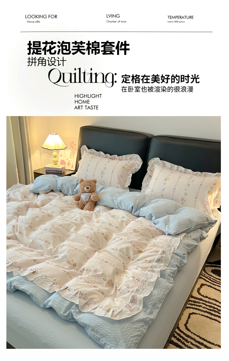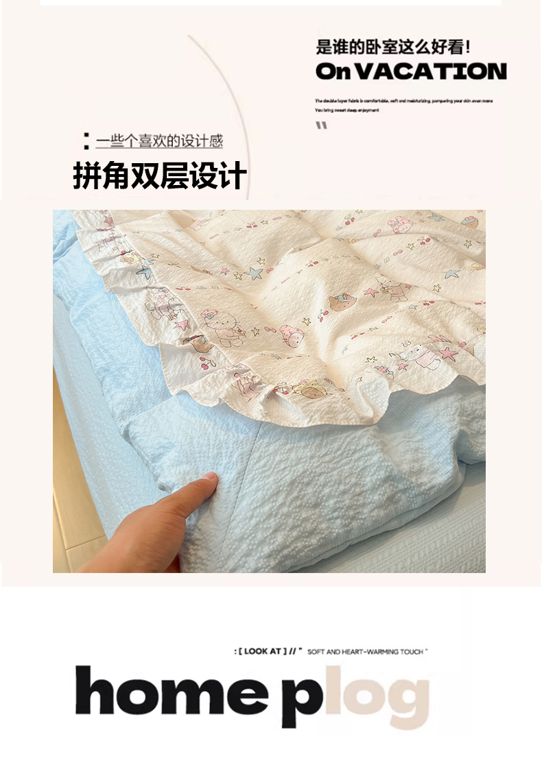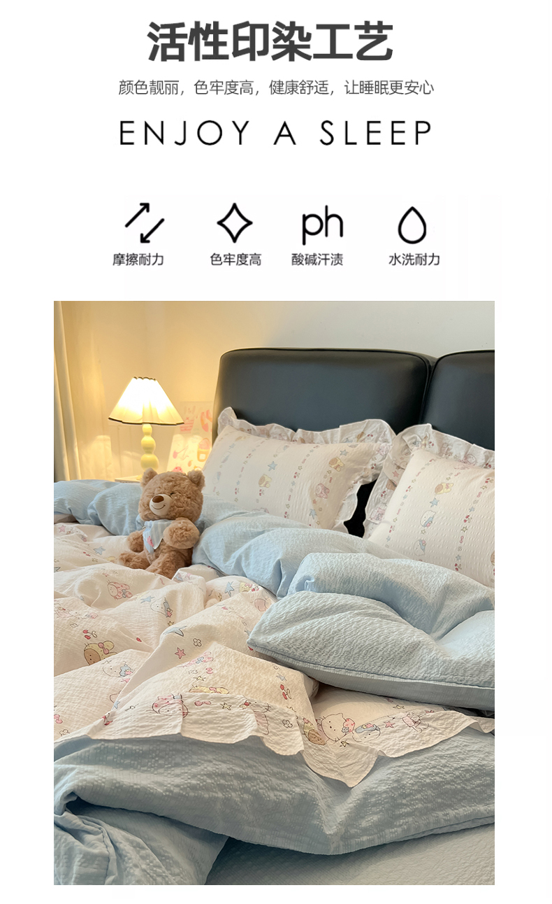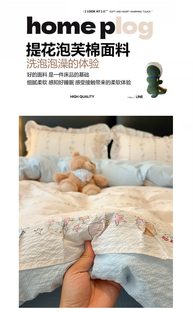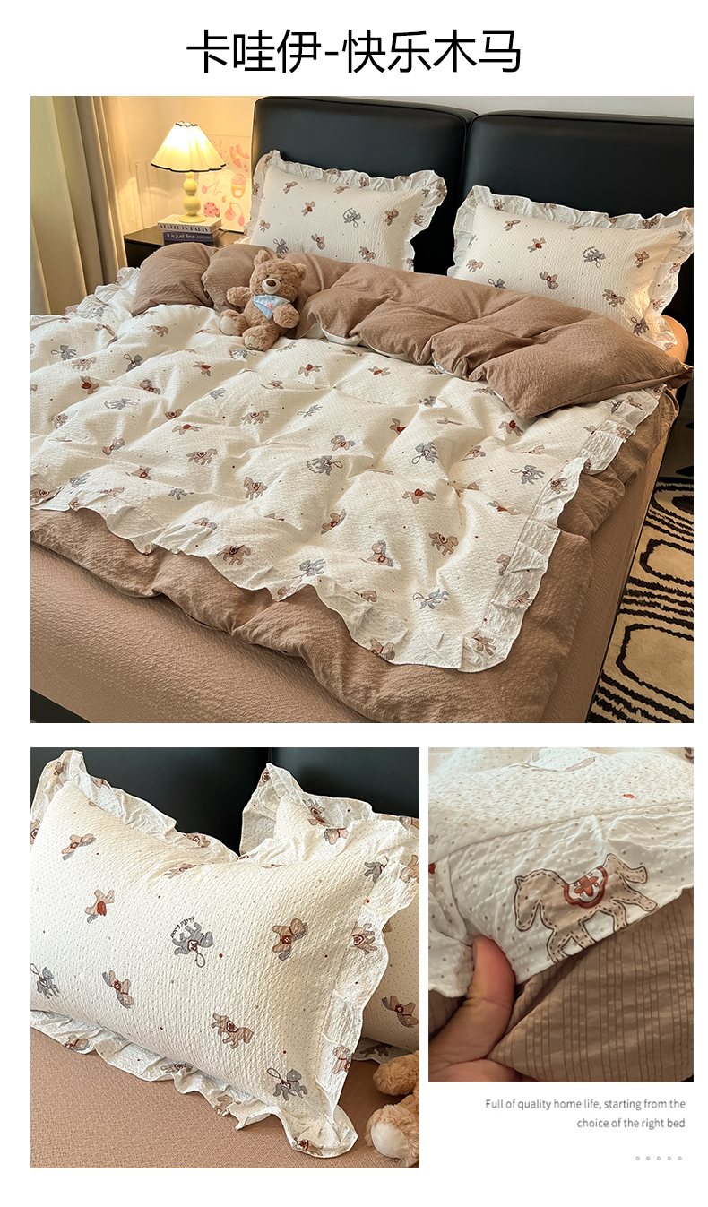 当前位置: 91家纺网 > 商品网购 > 床品套件 > 四件套 > 其它四件套 > 子钦家纺 2026春夏新款提花泡芙棉花边拼角工艺床单床笠四件套-卡哇伊 卡哇伊-快乐家族