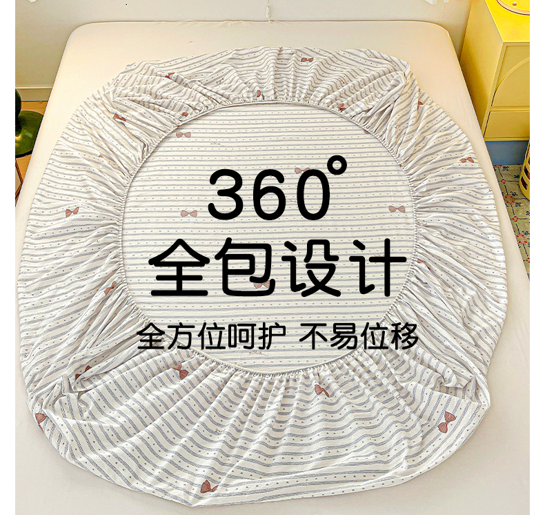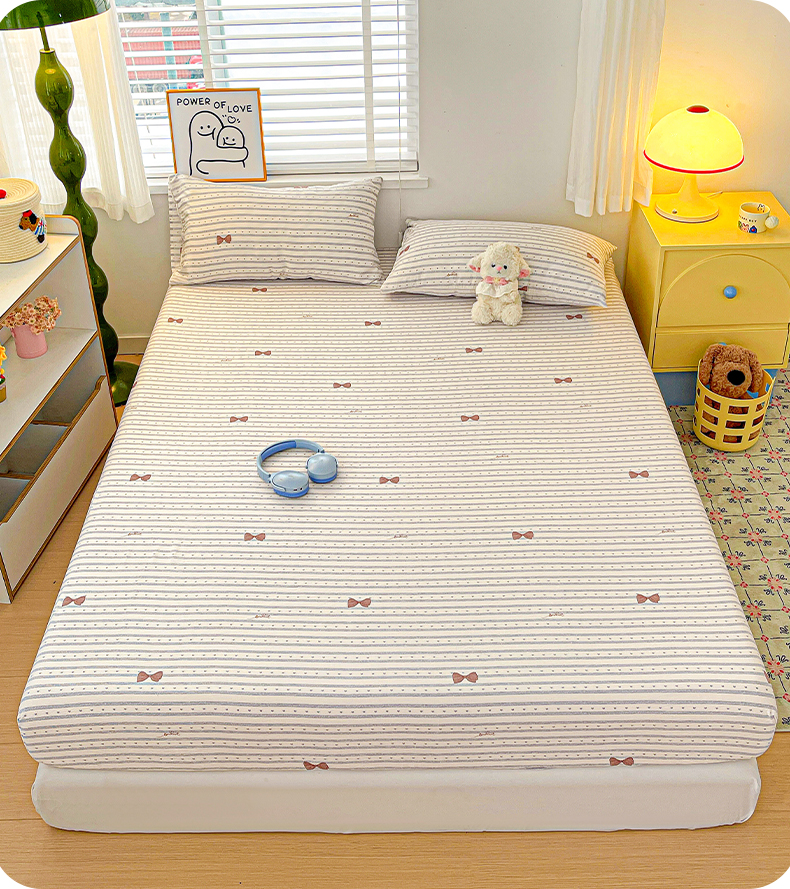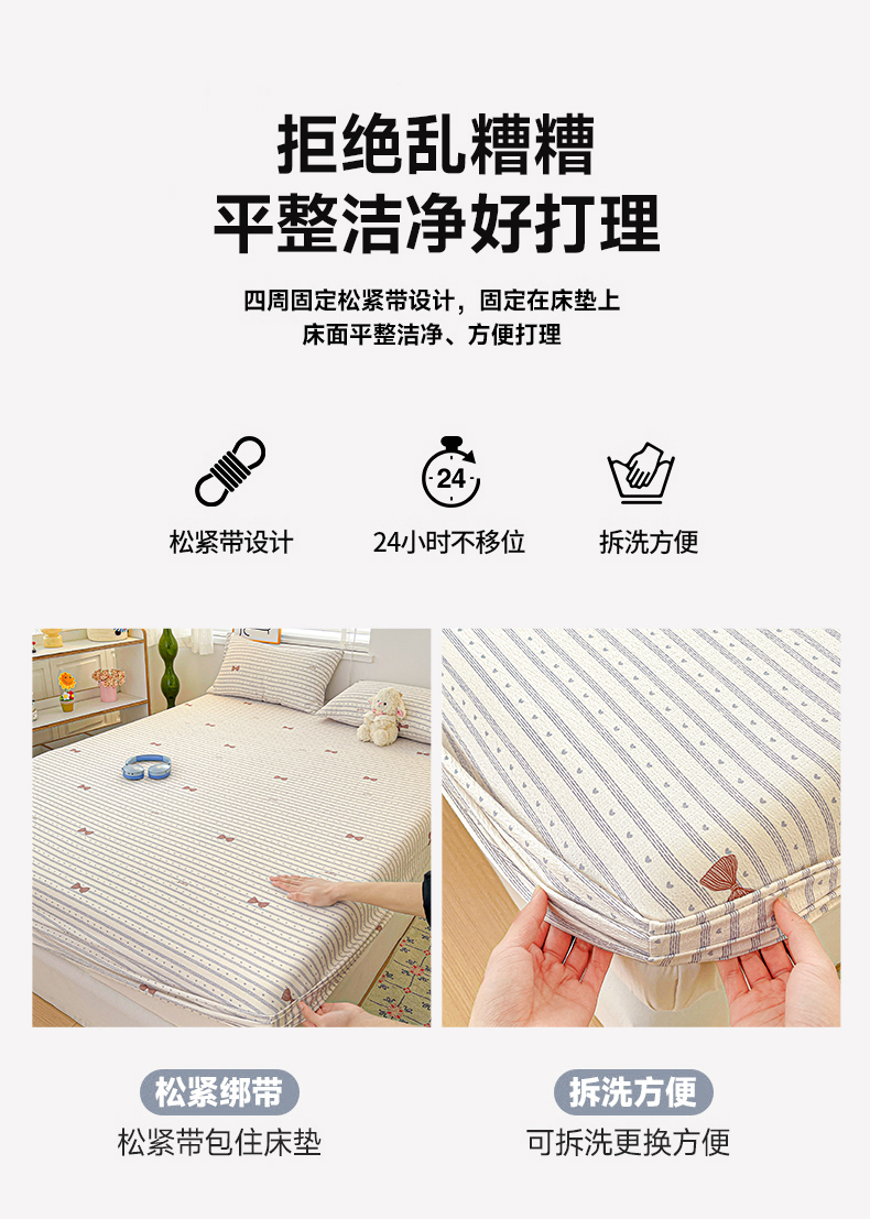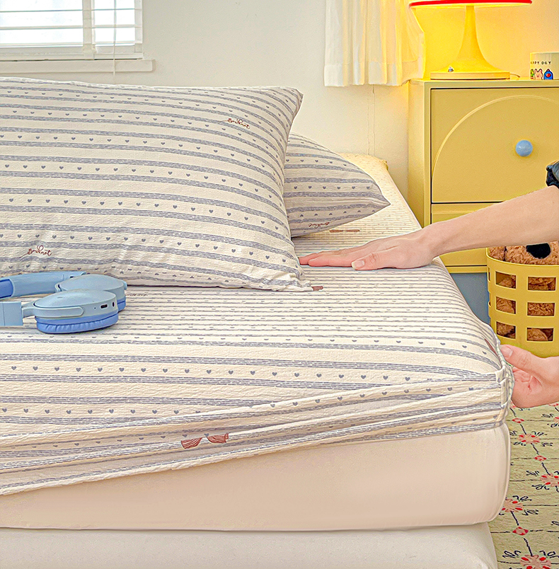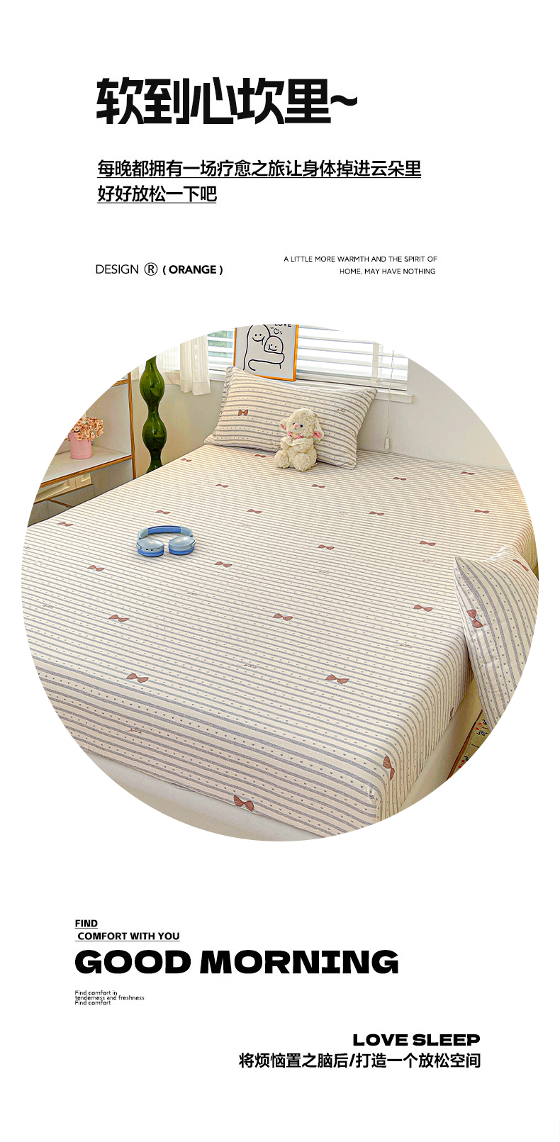 • 91家纺网 家纺一手货源 找家纺 仟人梦 2026新款云感双层纱印花单床笠床笠单件 清新条纹