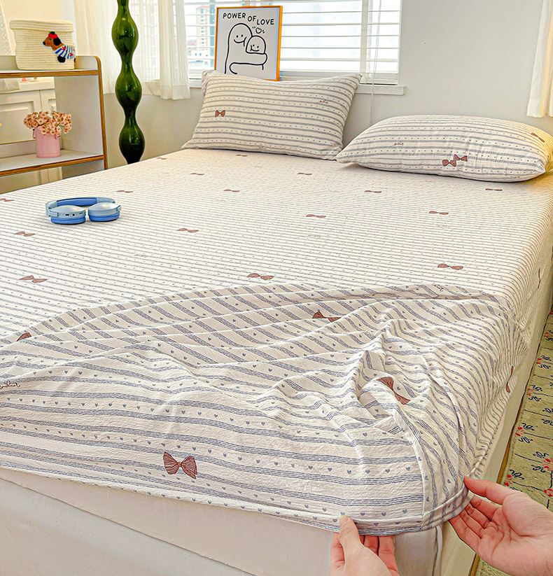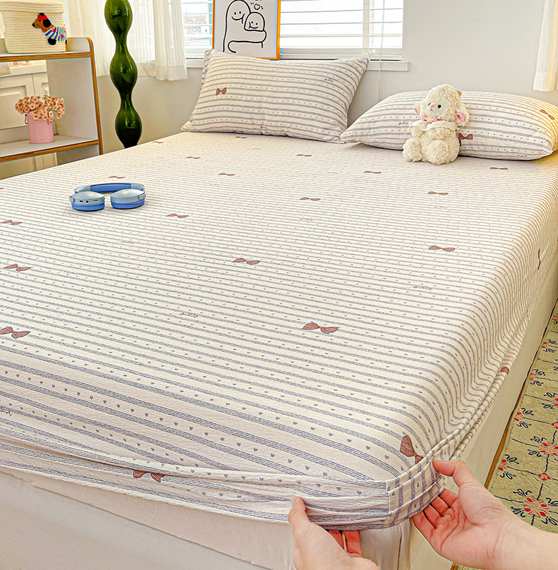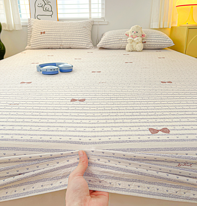 仟人梦 2026新款云感双层纱印花单床笠床笠单件 清新条纹