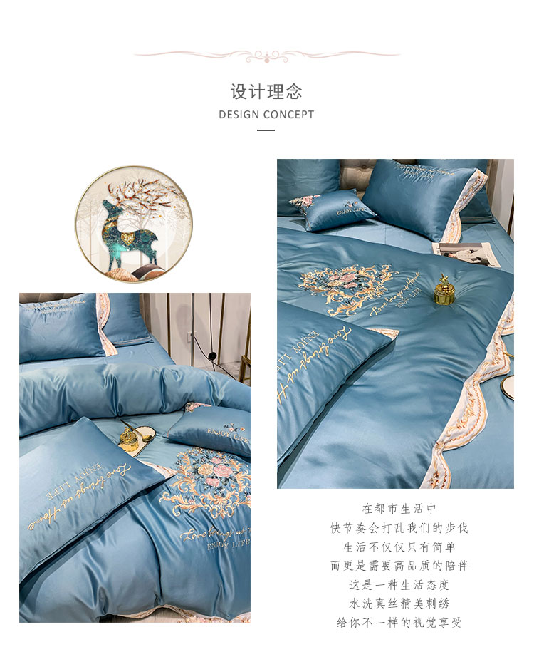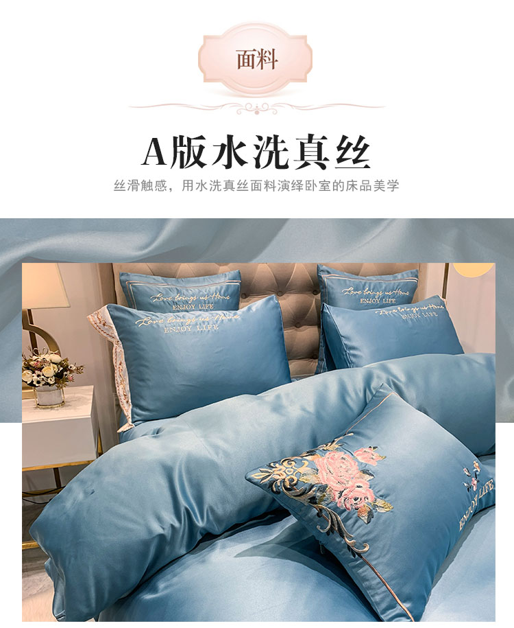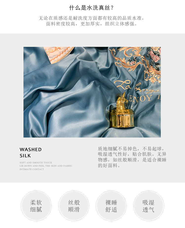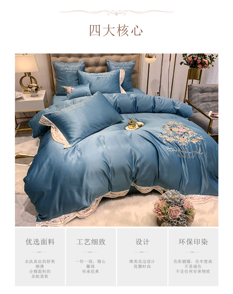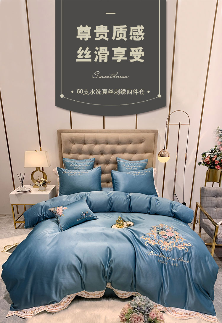 商品名称:安妮 2020新款双面水洗真丝贡缎四件套 湖蓝