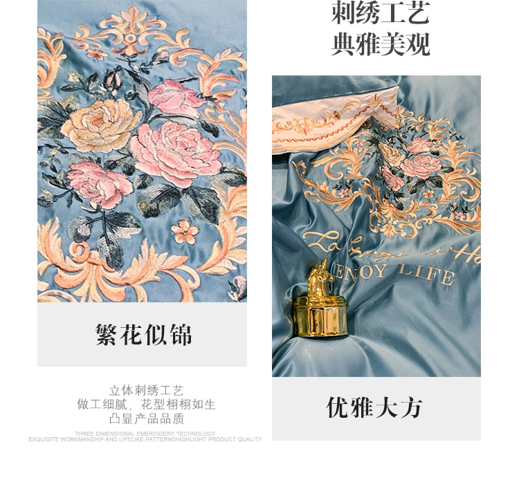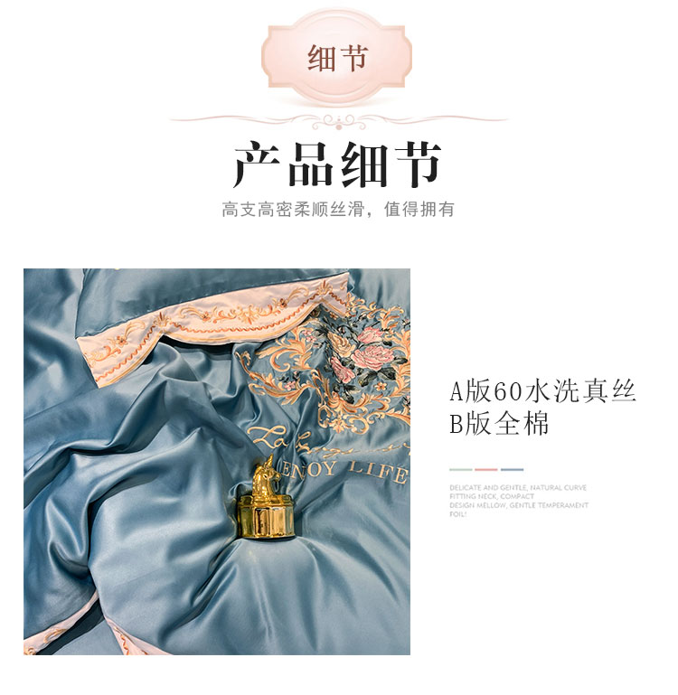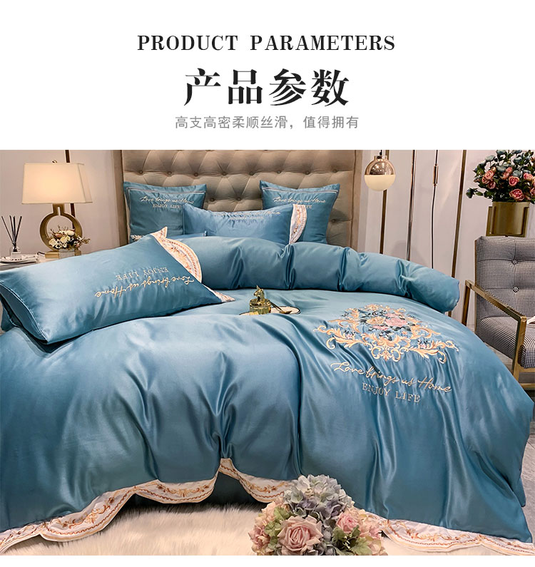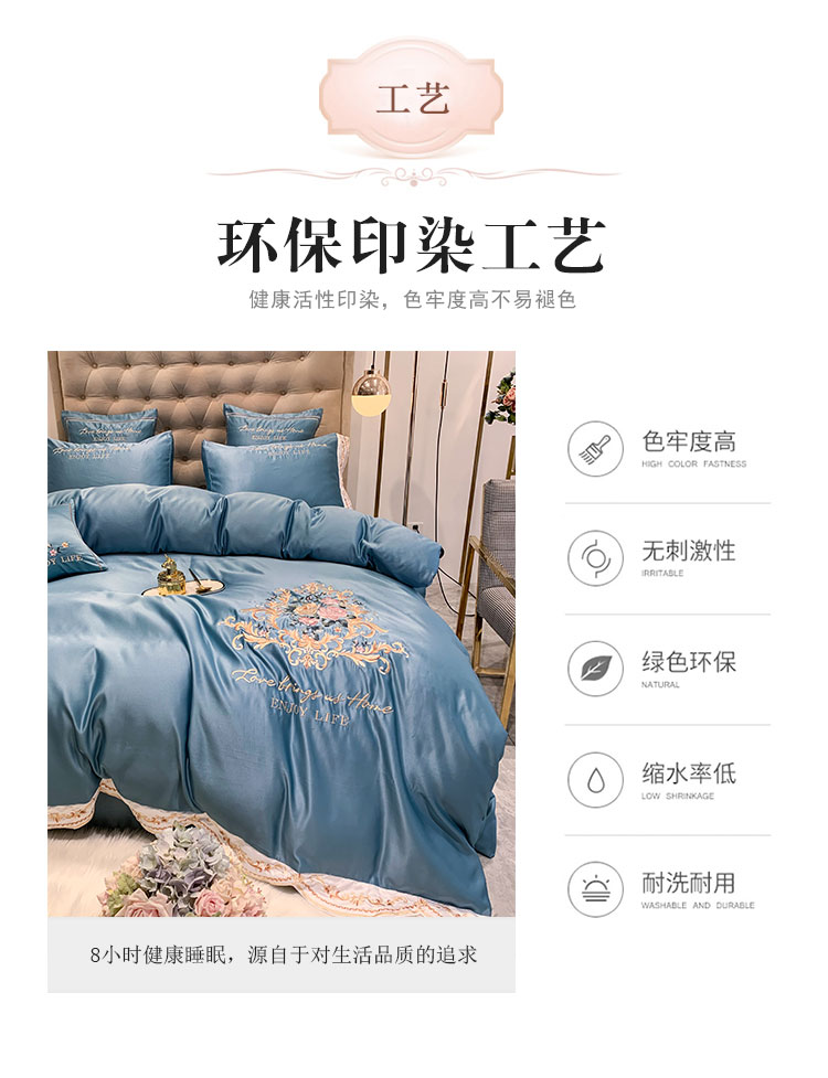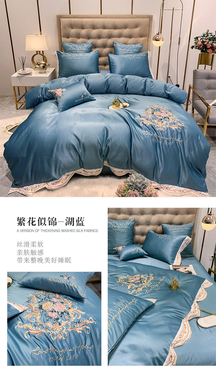 商品名称:安妮 2020新款双面水洗真丝贡缎四件套 湖蓝