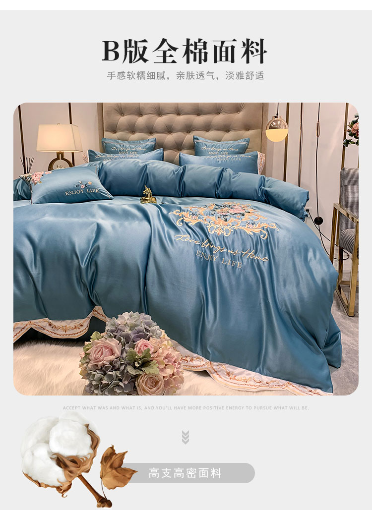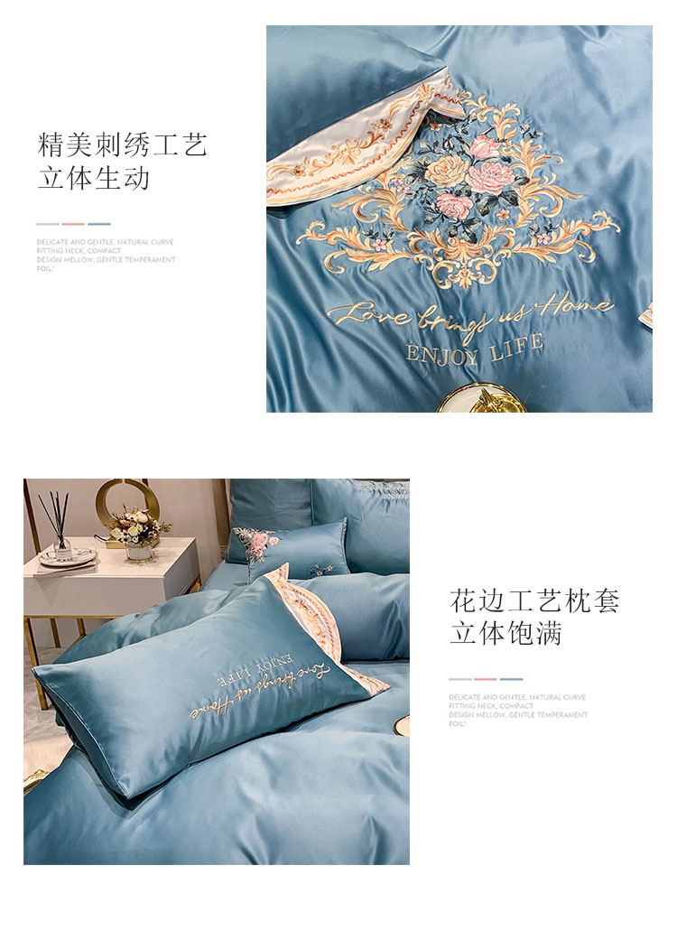 2023新款3m天丝四件套维秘花园 轻盈蓝,轻盈蓝