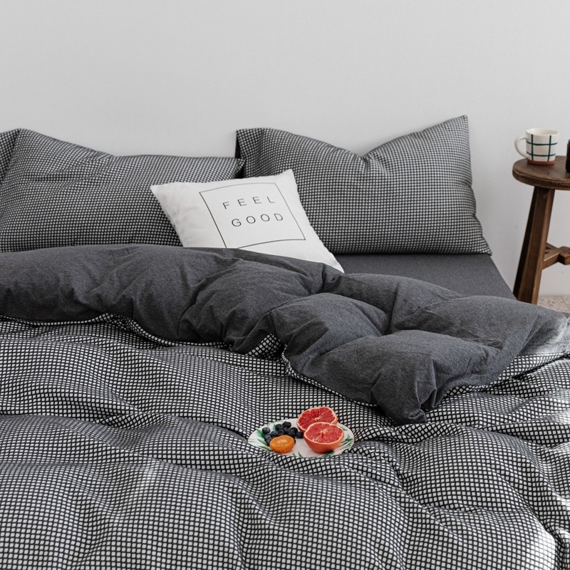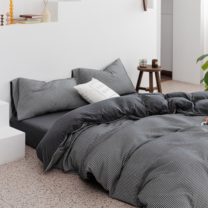 尚品本色2025年新款简约风全棉水洗棉格子条纹系列四件套光年灰,光年灰