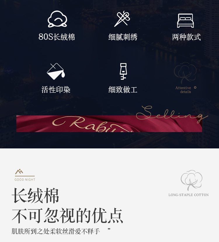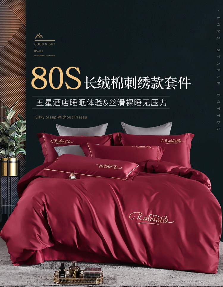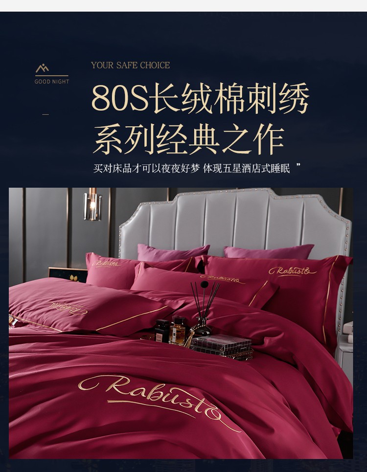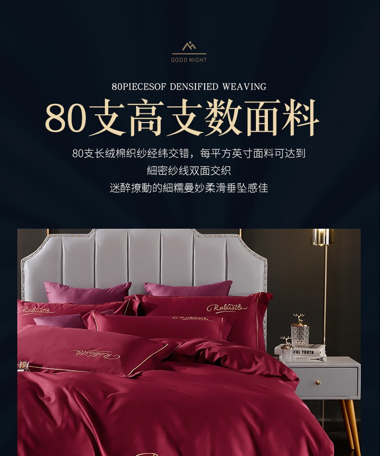 80支埃及长绒棉时尚绣四件套全棉四件套