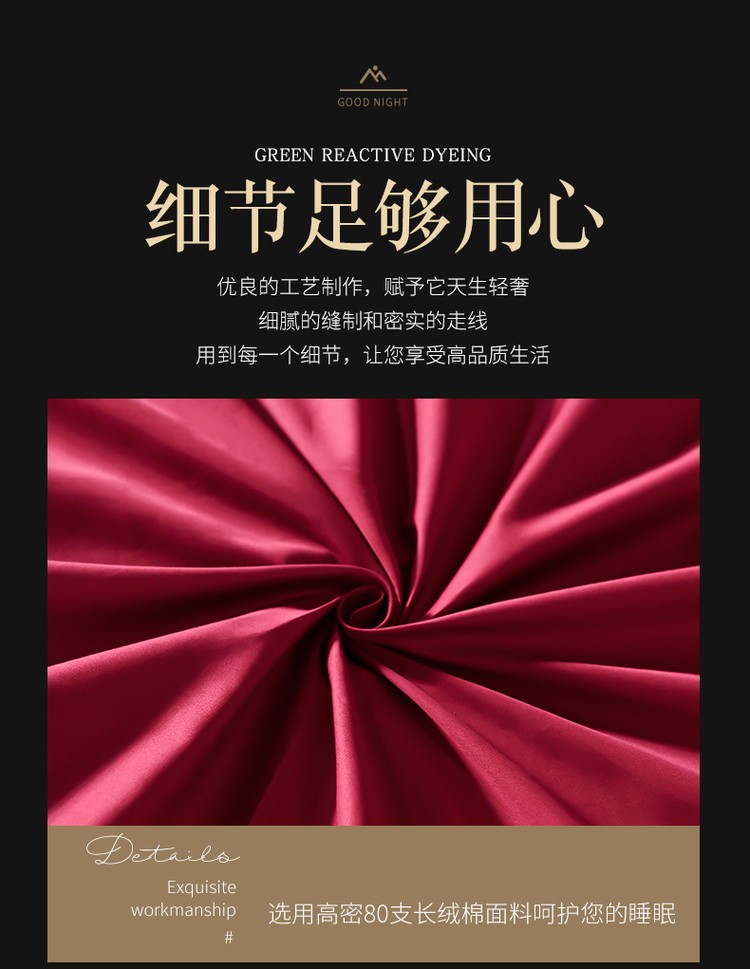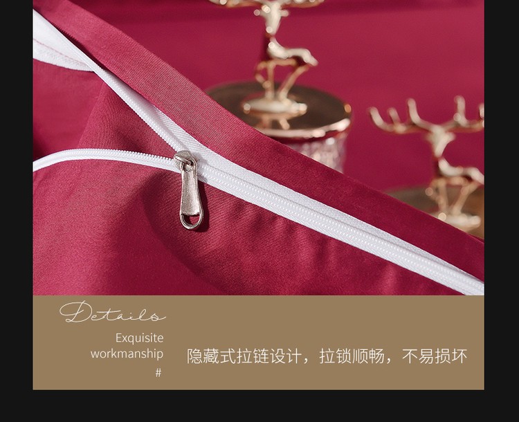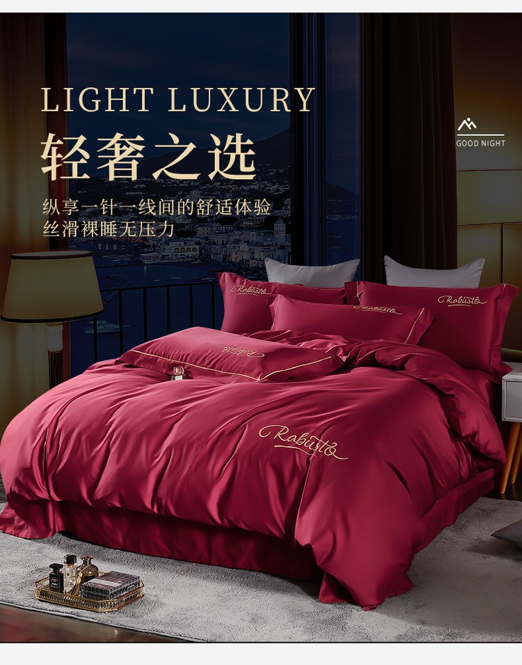 柔觉家纺 天丝刺绣贡缎提花全棉四件套,雅普诺-红灰