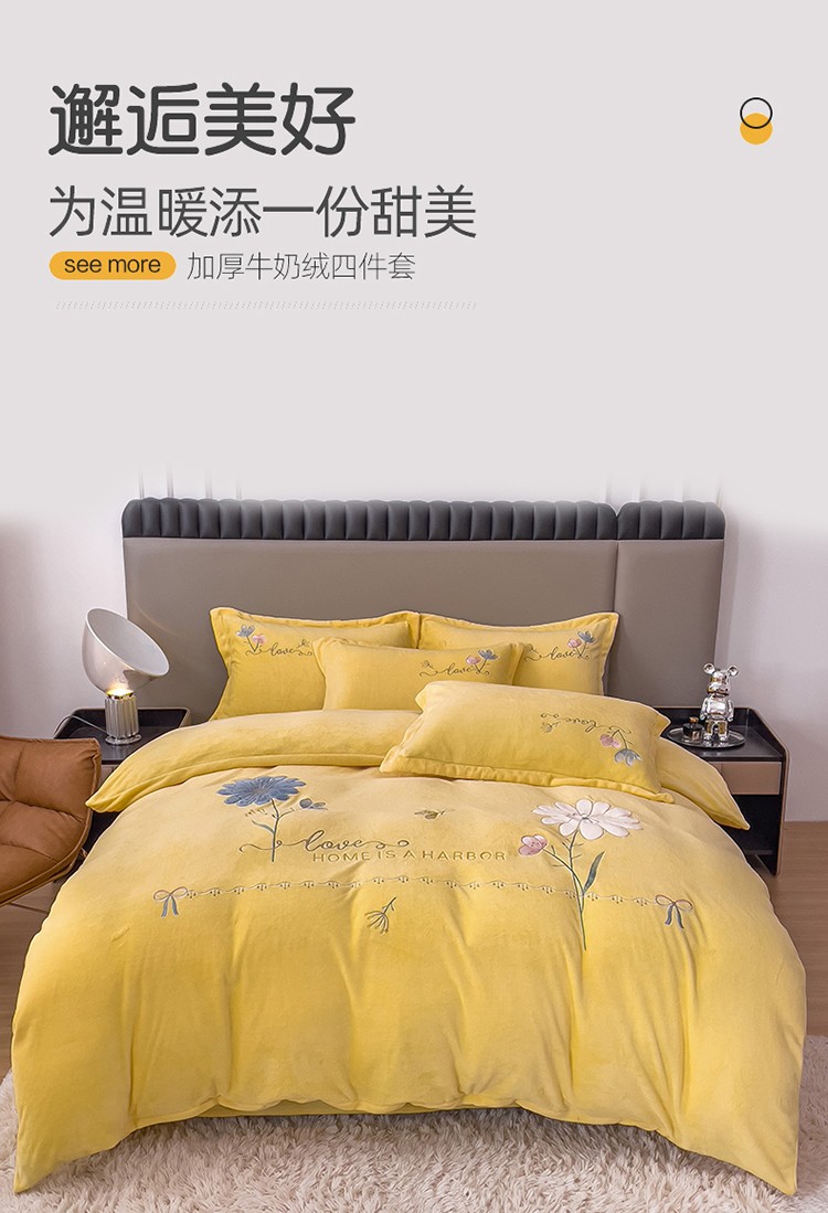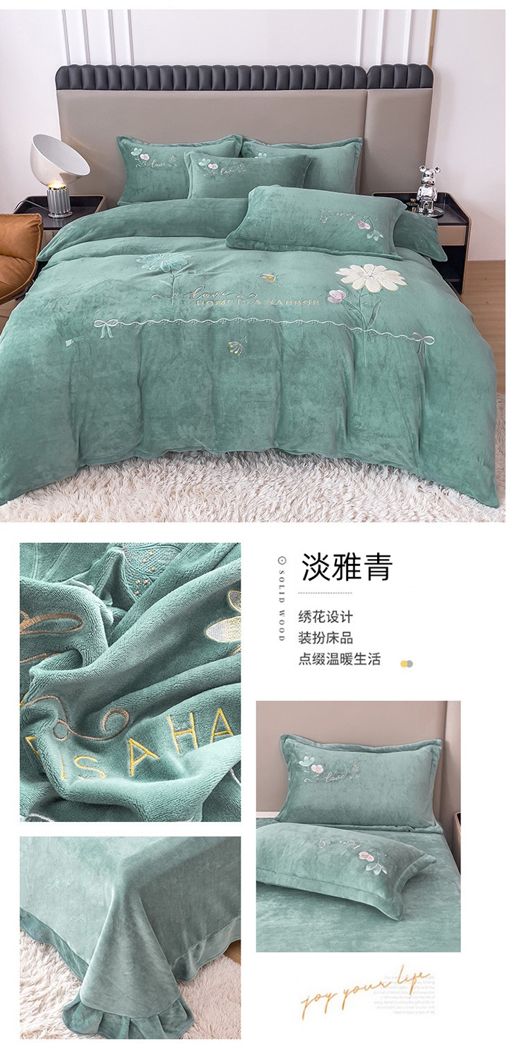 (总)靓生活 新款纯色牛奶绒绣花小清新床裙四件套-初遇