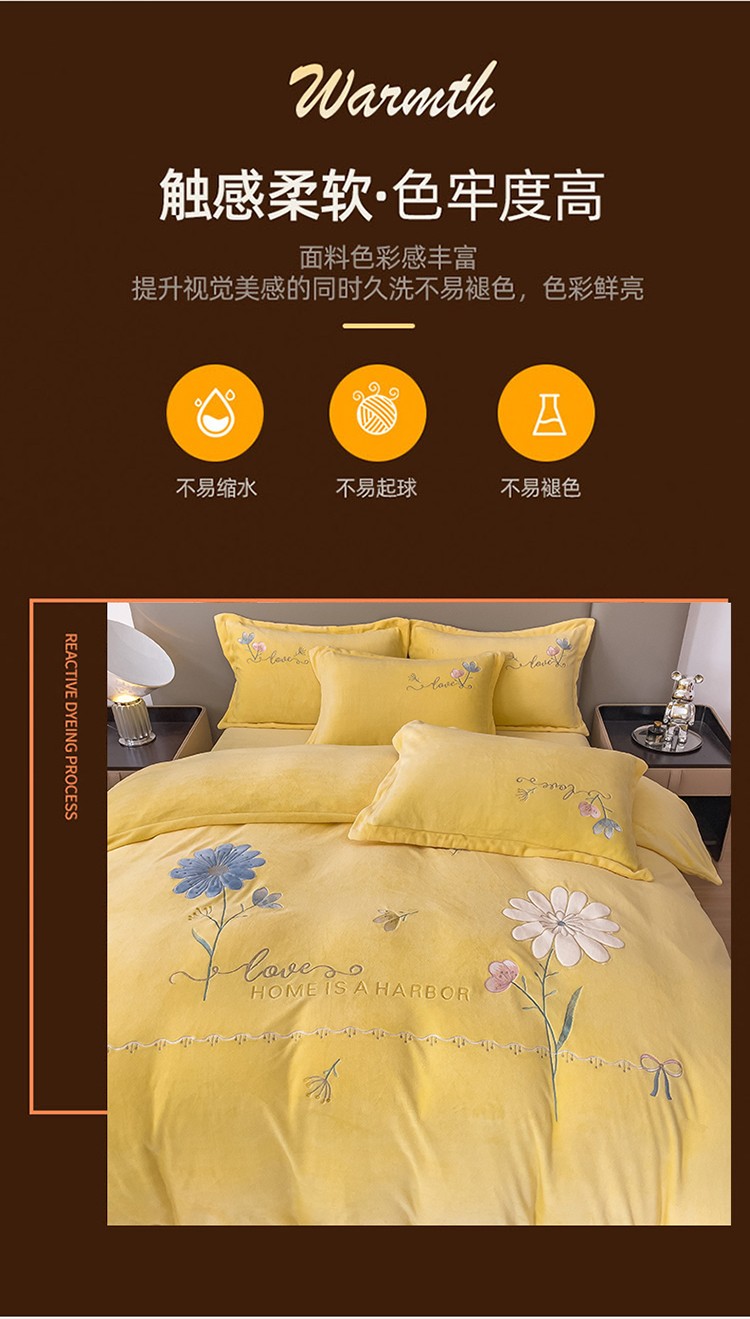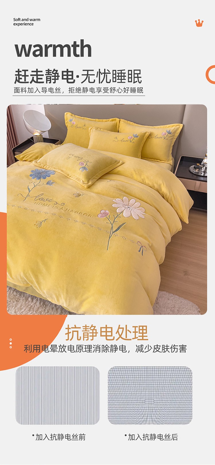 商品名称:(总)靓生活 新款纯色牛奶绒绣花小清新床裙四件套-初遇