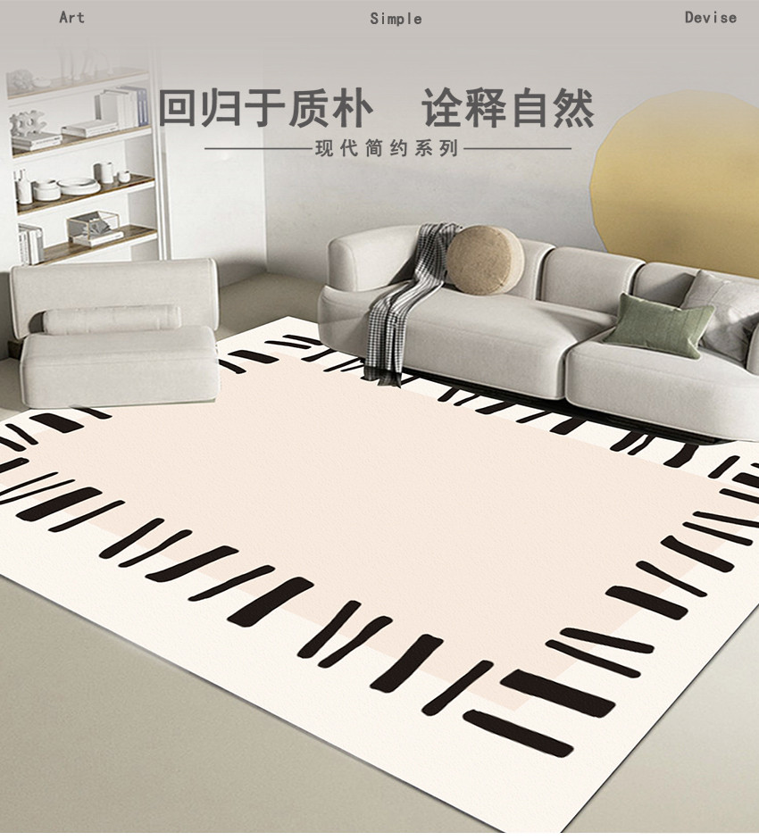 芙宁娜2023水晶绒简约奶油风客厅茶几毯北欧现代黑白轻奢高级地垫 暖居
