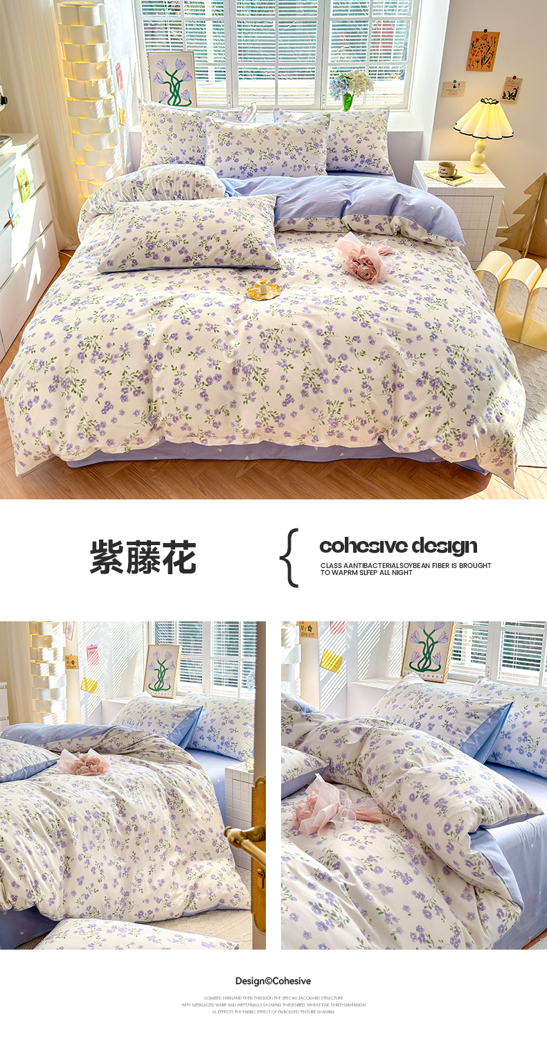 商品名称:沐棉家居 2024新款小清新全棉13372印花四件套 紫藤花