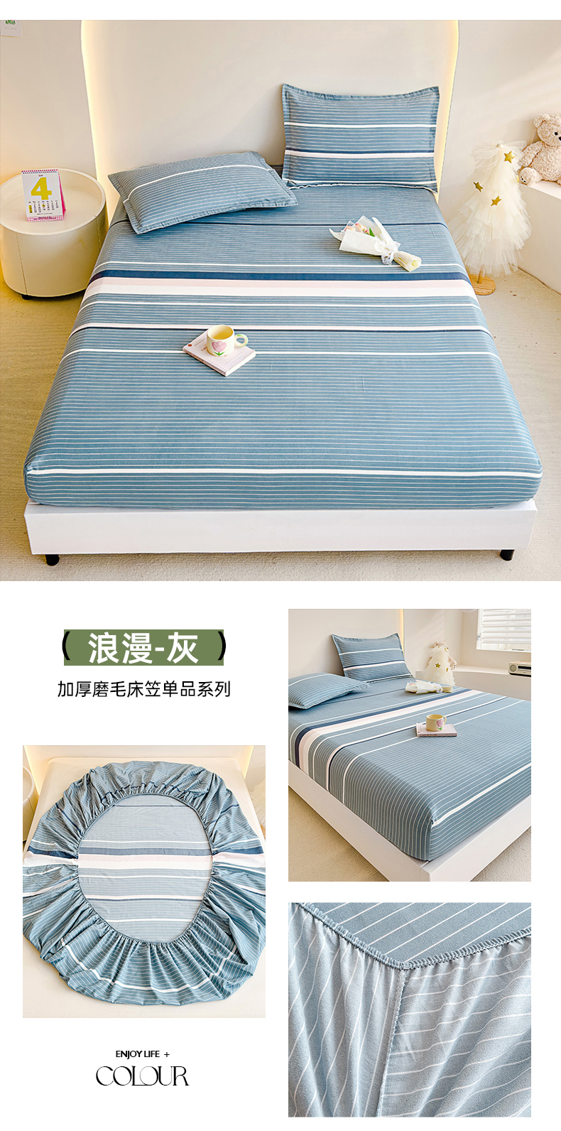 商品名称:靓生活 2024新款加厚磨毛生态棉单品床笠 浪漫-灰