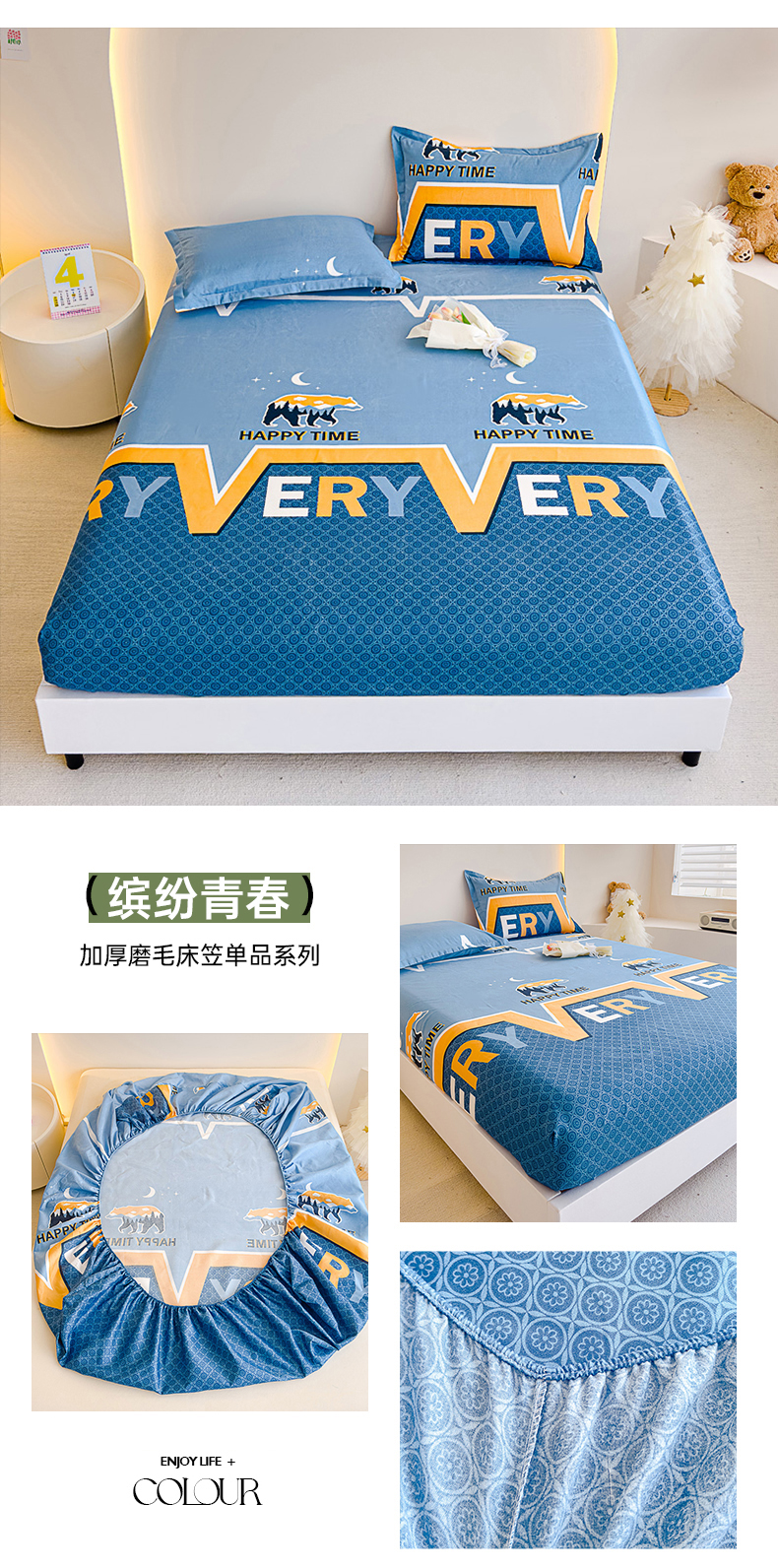 商品名称:靓生活 2024新款加厚磨毛生态棉单品床笠 缤纷青春