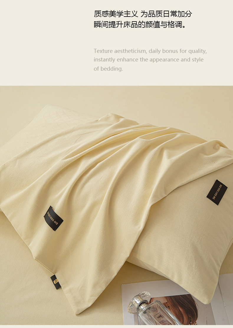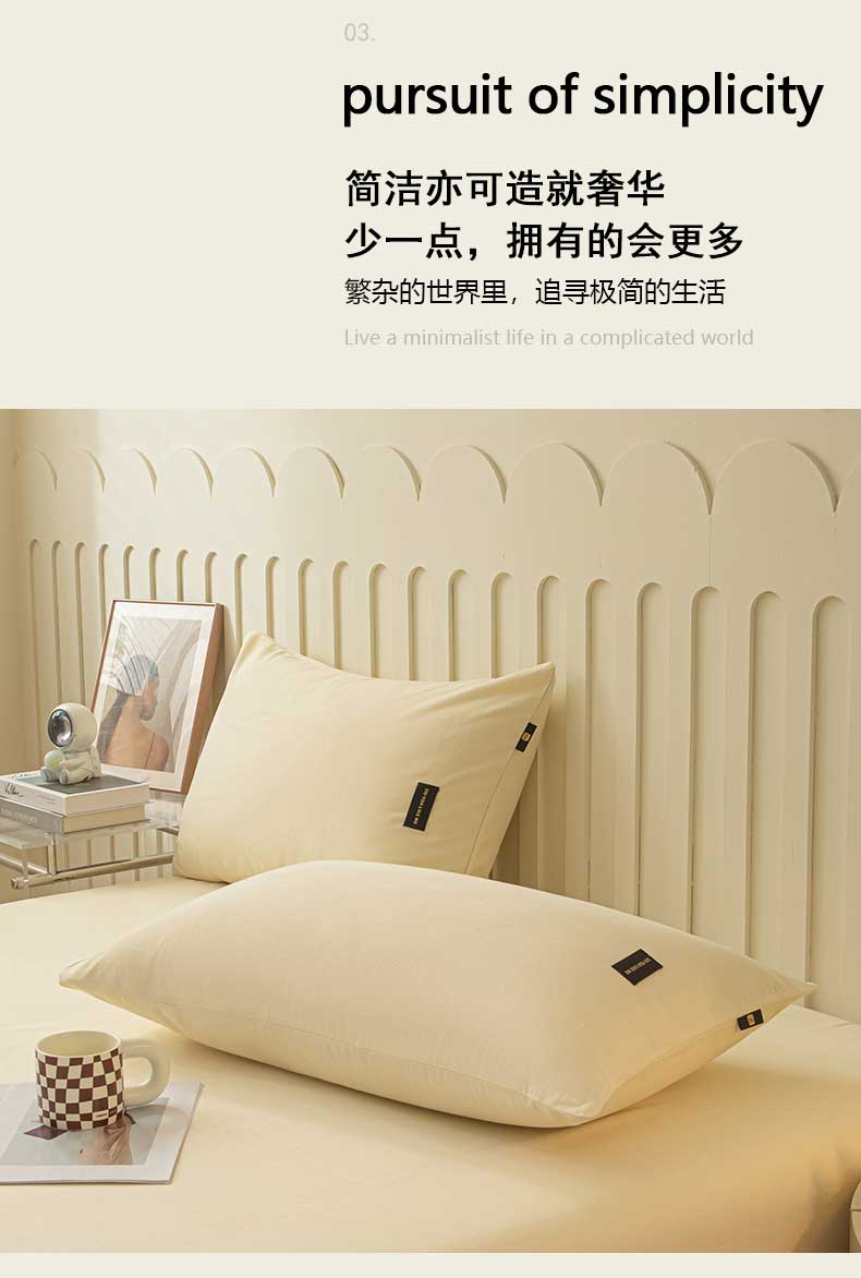 涵宸家纺 2024新款原棉纯色织标磨毛单品及套件--枕套 单枕套-奶昔白
