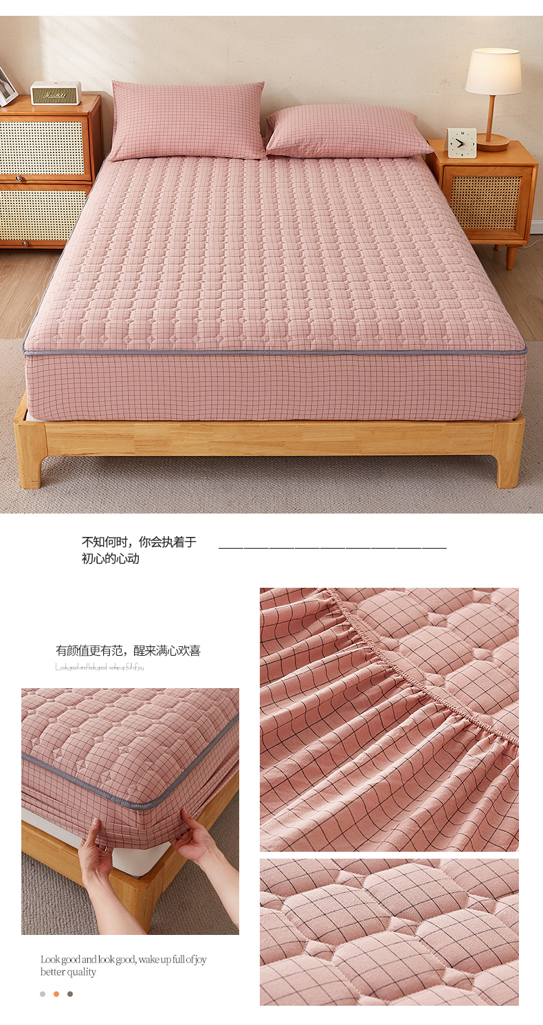 迪乐妮家居 2024新款大床色织全棉夹棉床笠 粉小格
