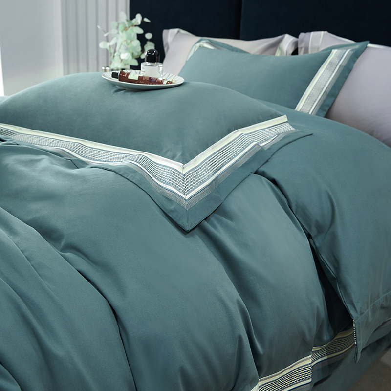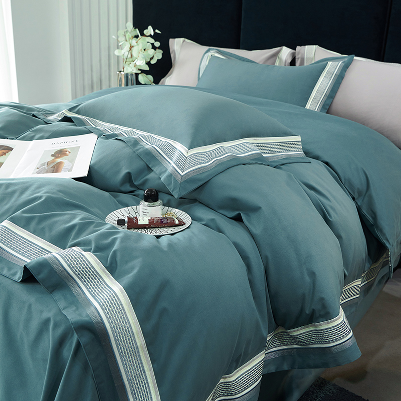 总榻尚家居 2023新款格瑞斯系列100贡缎长绒棉四件套工艺款四件套,格瑞斯紫,格瑞斯白,格瑞斯灰,格瑞斯蓝