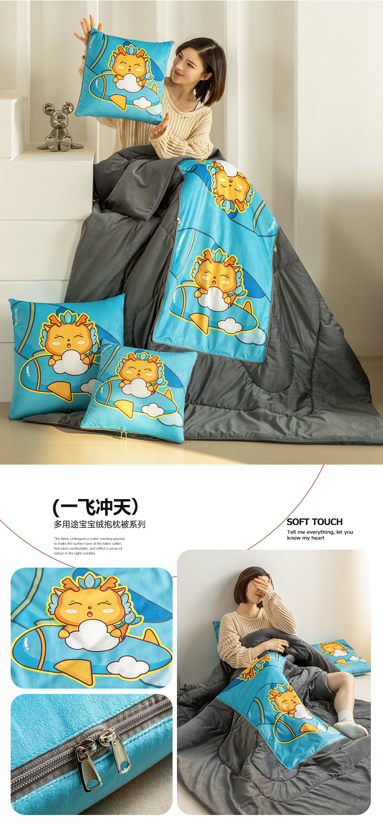 商品名称:雷人家纺 2024新款多功能印花宝宝绒抱枕被 一飞冲天