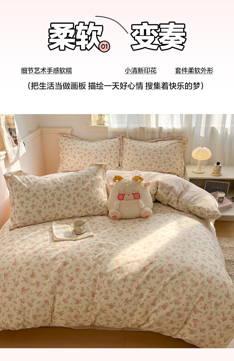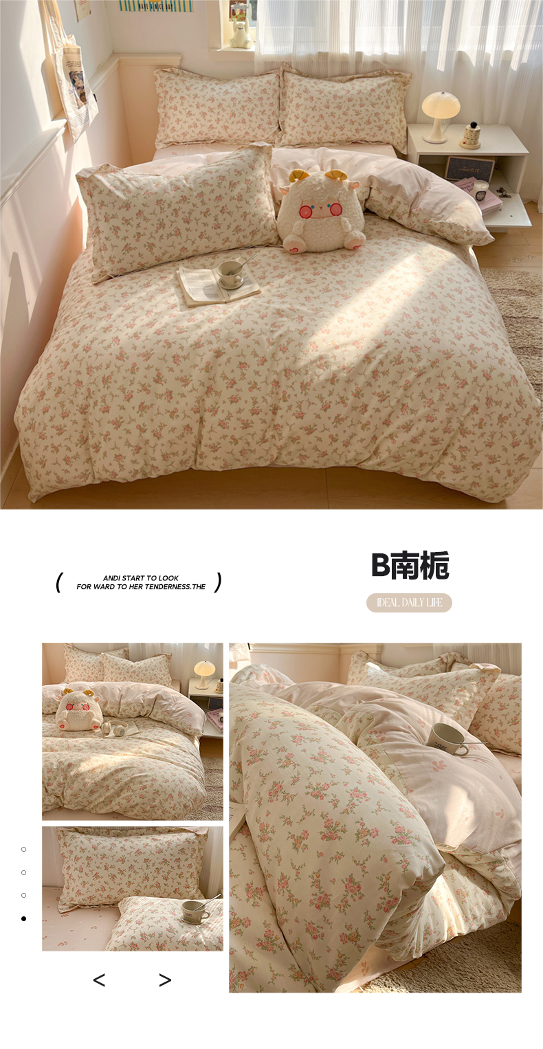 当前位置: 91家纺网 > 商品网购 > 床品套件 > 四件套 > 全棉普通四件套 > 涵宸家纺 2025新款全棉印花四件套 B南栀