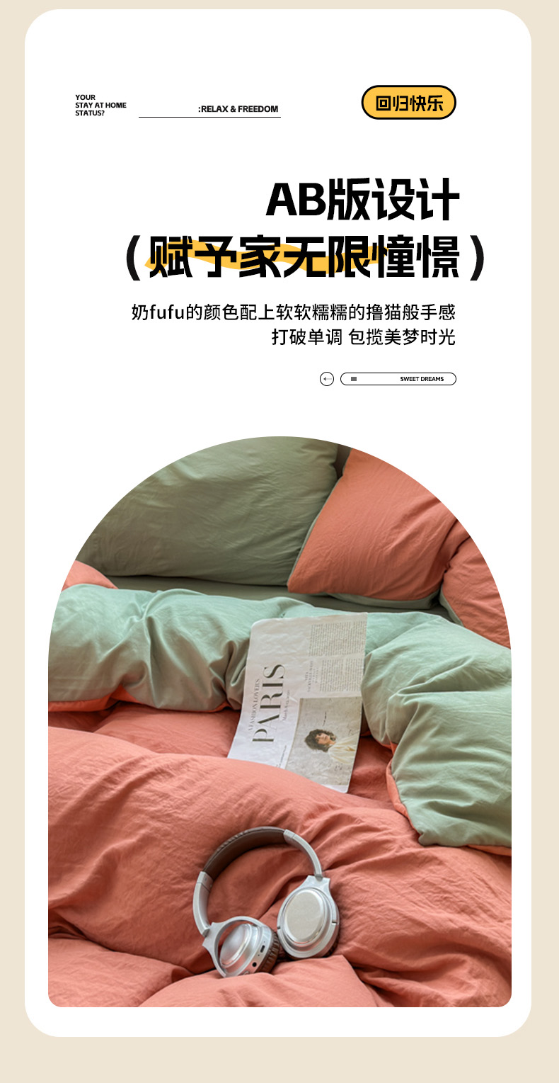 (总)冕悠家纺 2025新款A类105克超柔褶皱水洗棉拼色四件套-单被套