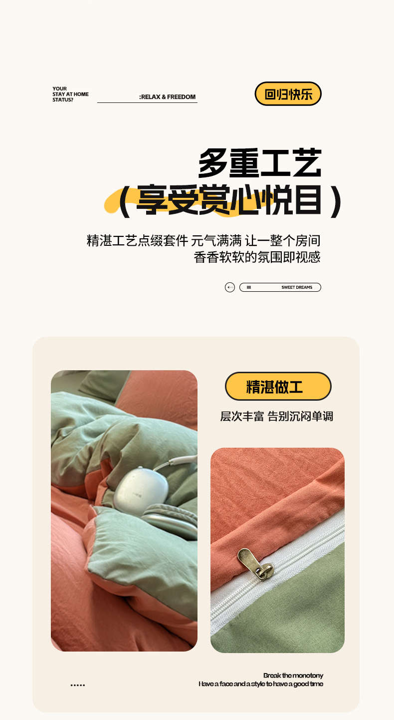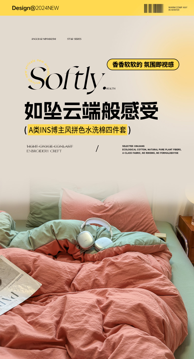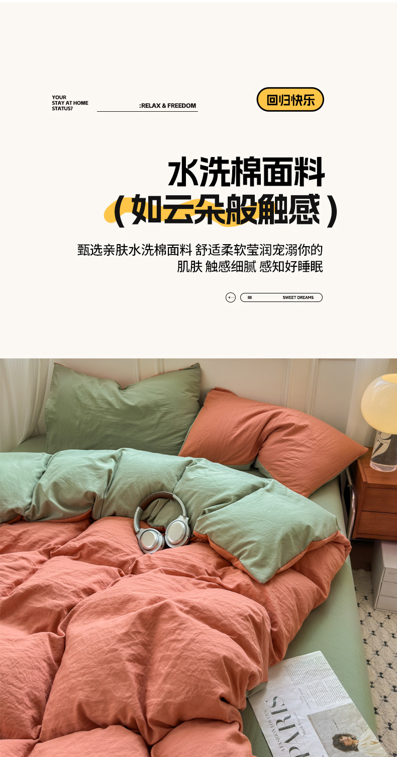 商品名称:(总)冕悠家纺 2025新款A类105克超柔褶皱水洗棉拼色四件套-单被套