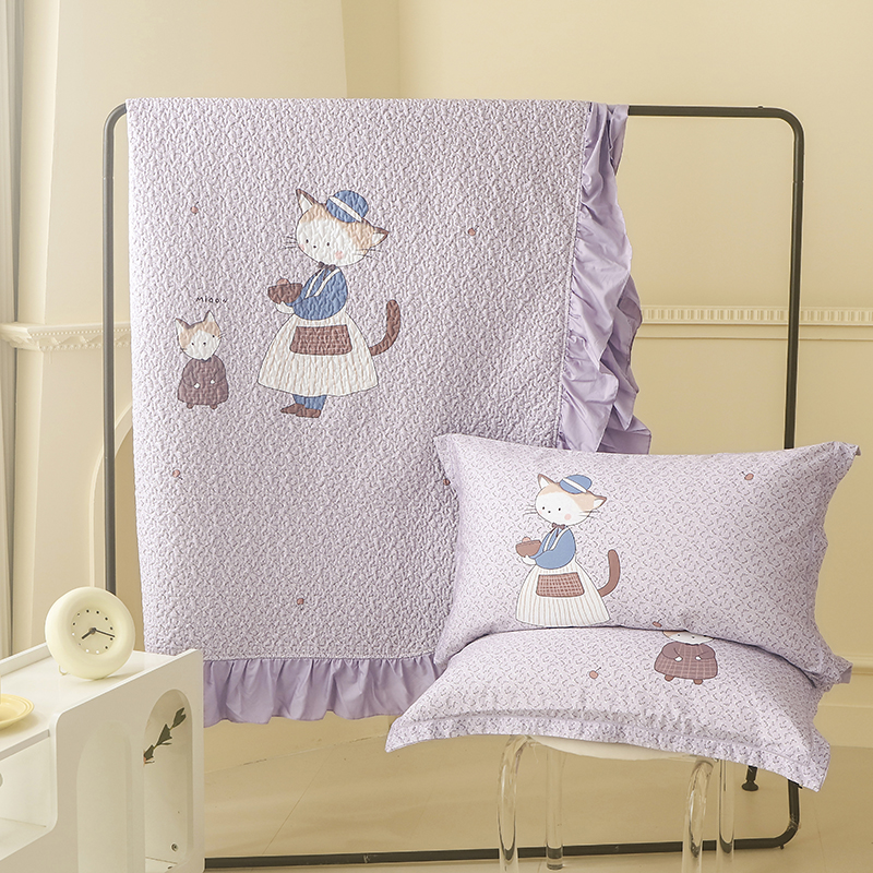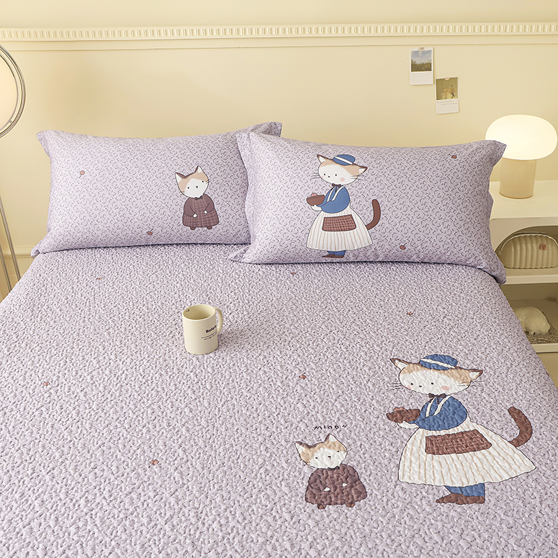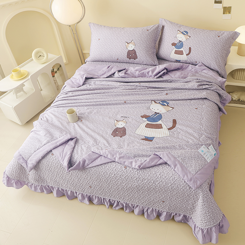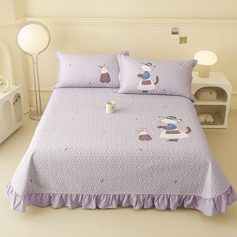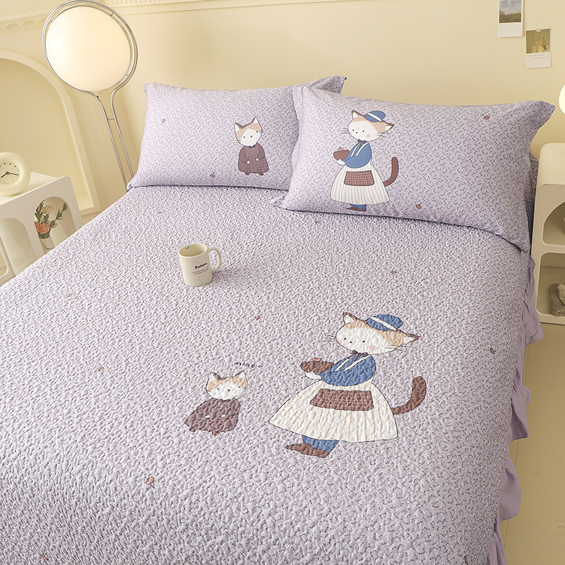 商品名称:丫丫家纺 2025新款直播热款60天丝床盖法式花边夹棉床盖三件套绗缝可水洗机洗床盖 喵妈喵宝
