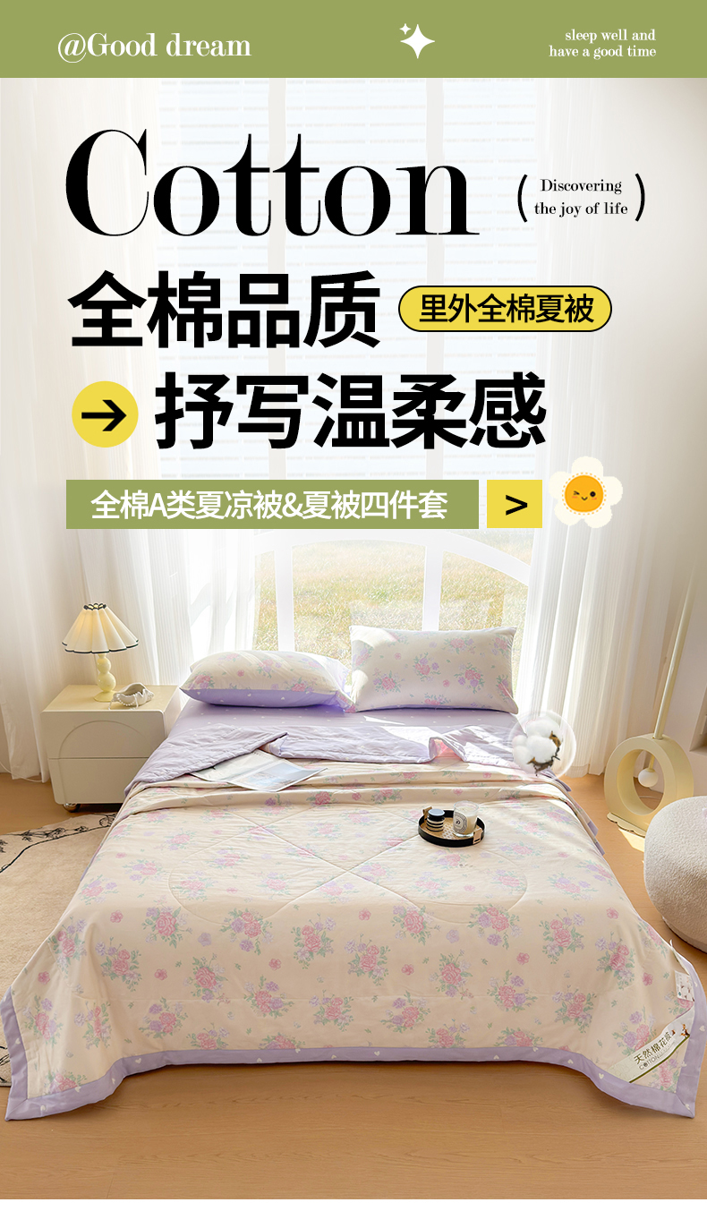 商品名称:蓝雀翎 2025新款全棉印花新疆棉花夏被 漫日之夏
