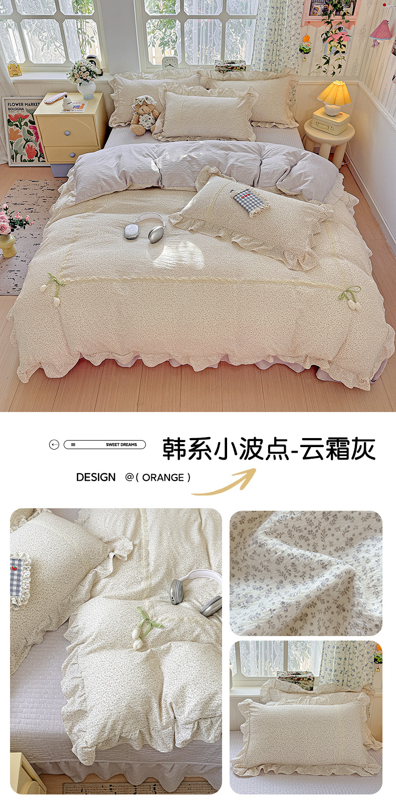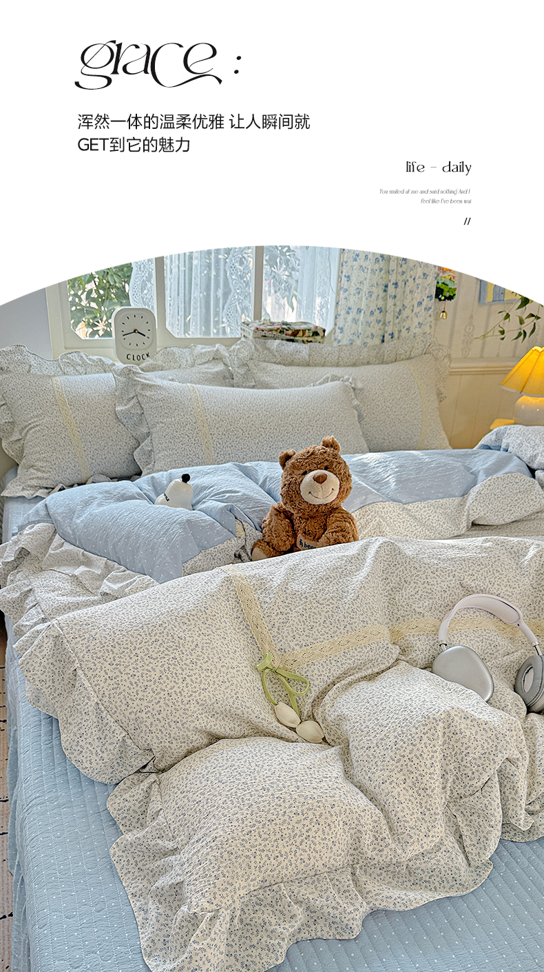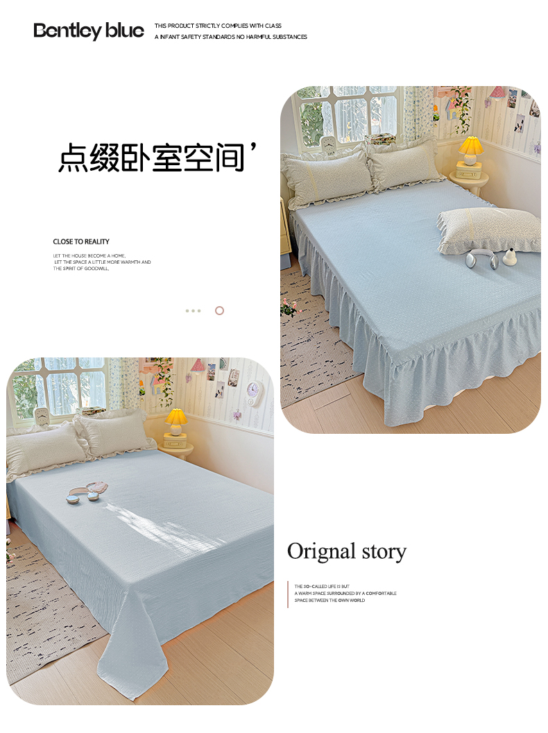 当前位置: 91家纺网 > 商品网购 > 床品套件 > 四件套 > 其它四件套 > 富米莱(原臻工厂) 2025新款韩式云感亲肤棉蝴蝶结工艺床盖床裙四件套 韩系小波点-茉雾蓝
