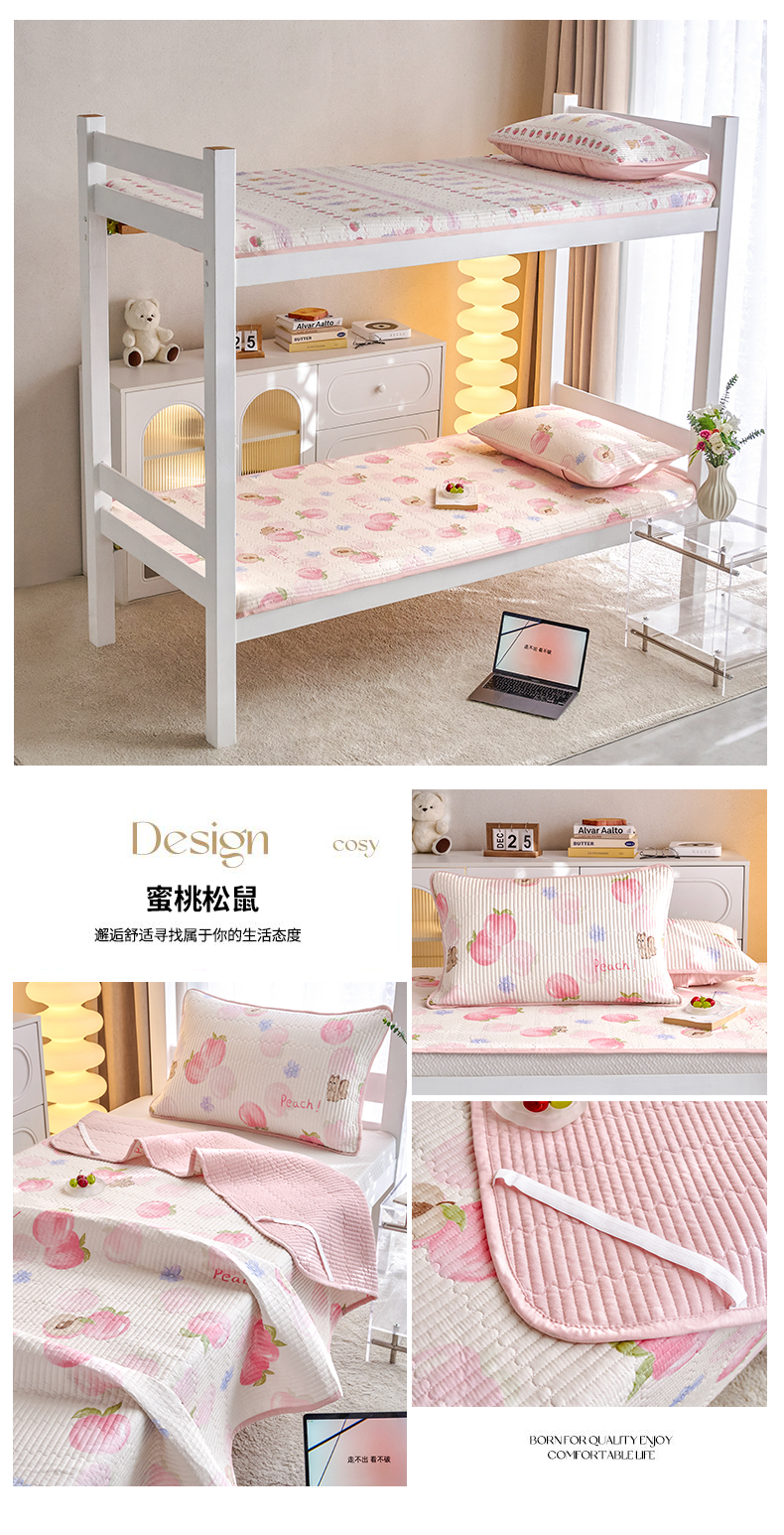 X猫先生 2025小清新全棉学生床盖-新增花型 蜜桃松鼠