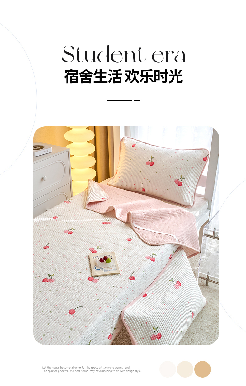 X猫先生 2025小清新全棉学生床盖-新增花型 七彩樱桃