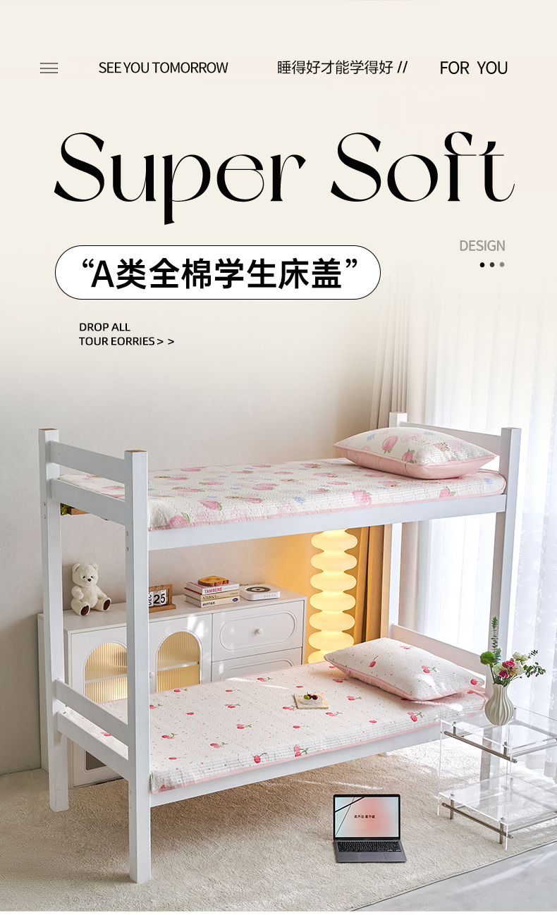 • 91家纺网 家纺一手货源 找家纺 X猫先生 2025小清新全棉学生床盖-新增花型 七彩樱桃
