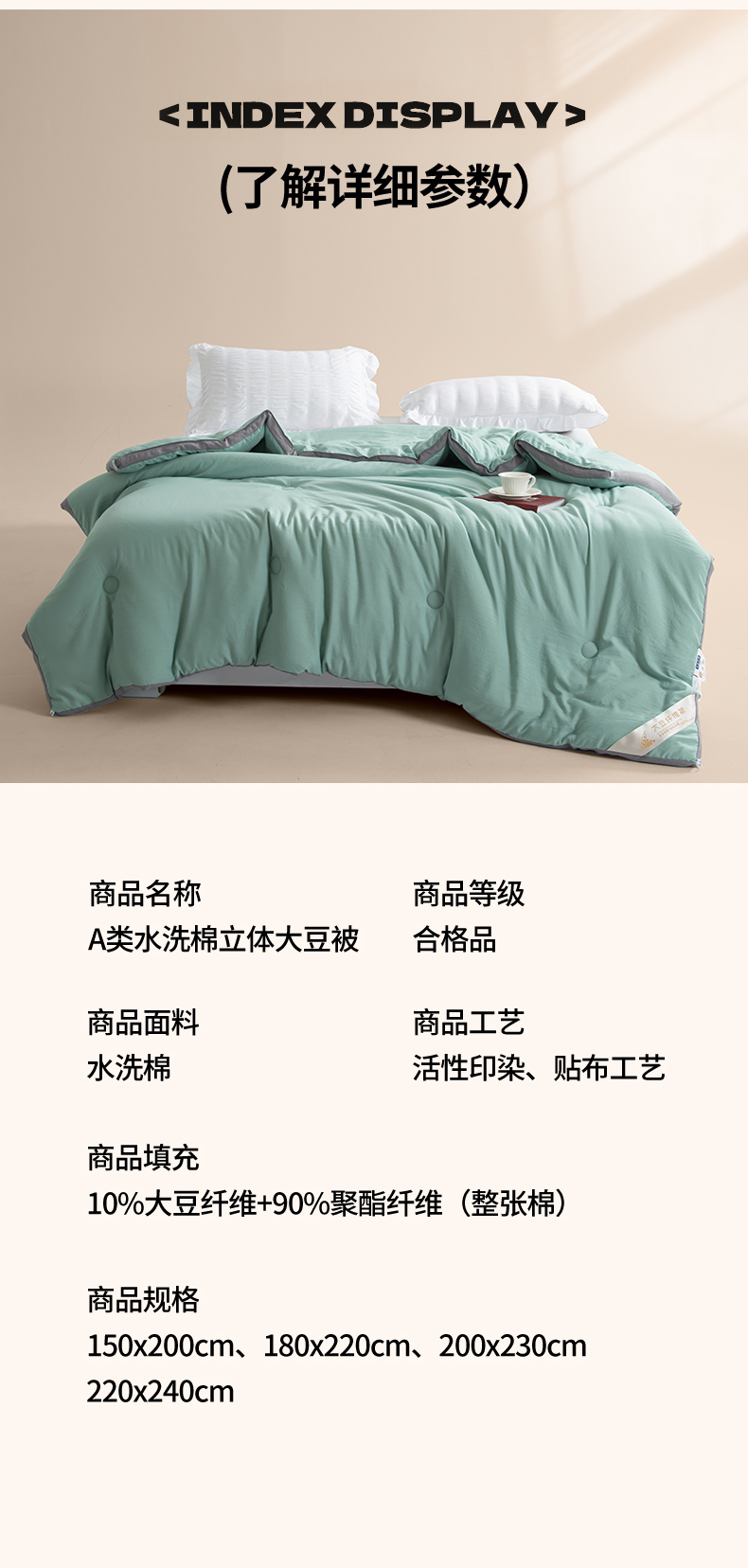 • 91家纺网 家纺一手货源 找家纺 (总)森林人 2024新款A类水洗棉立体大豆被 冬被 被芯春秋被,立体-薄荷绿,立体-宾利蓝,立体-豆沙,立体-卡其,立体-柠檬黄,立体-绅士灰,立体-优雅玉,立体-珍珠白