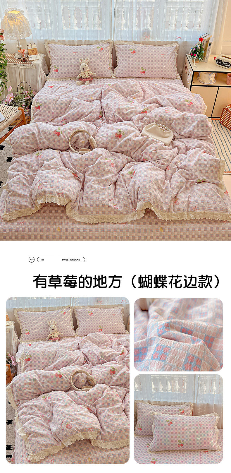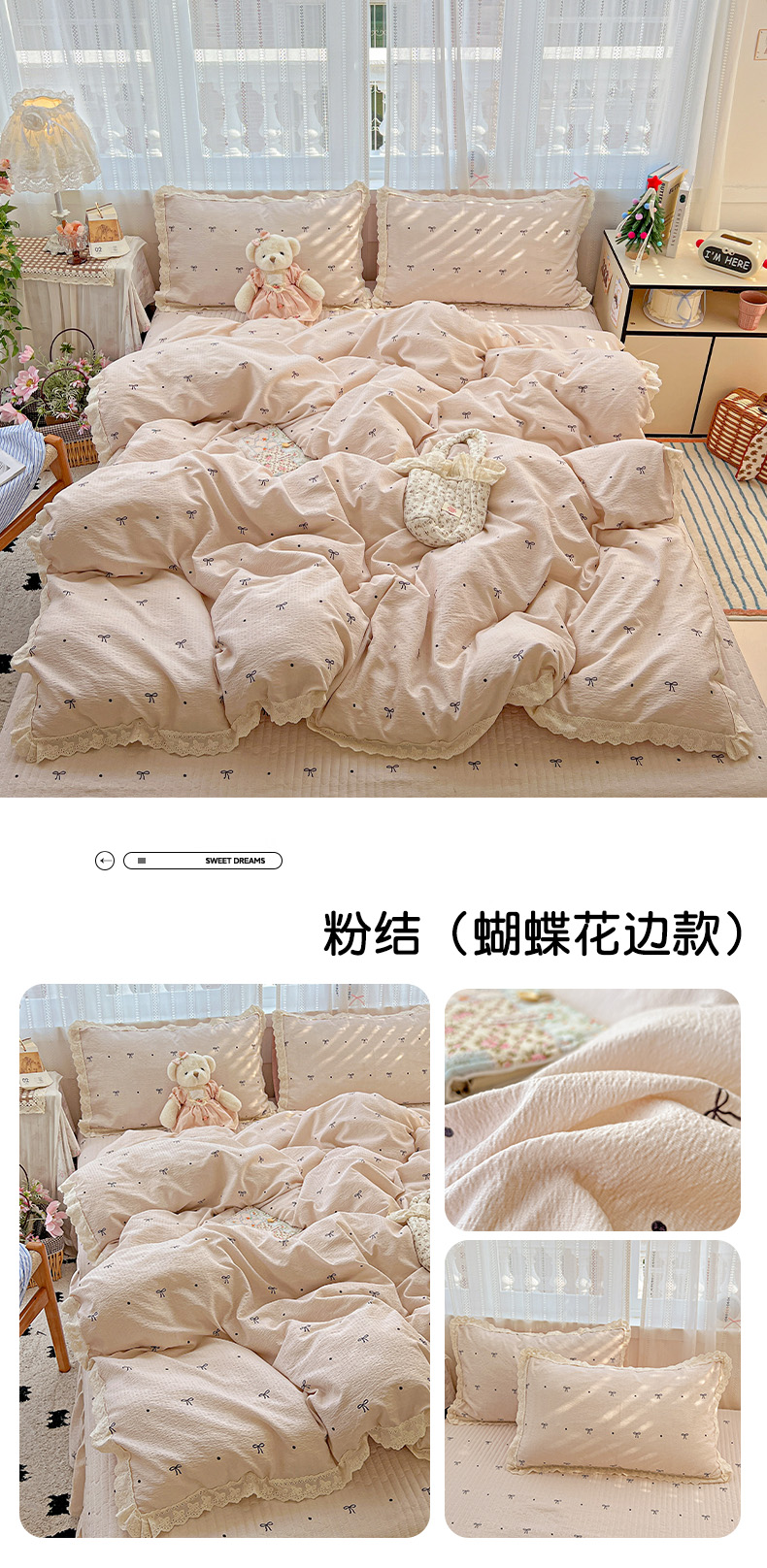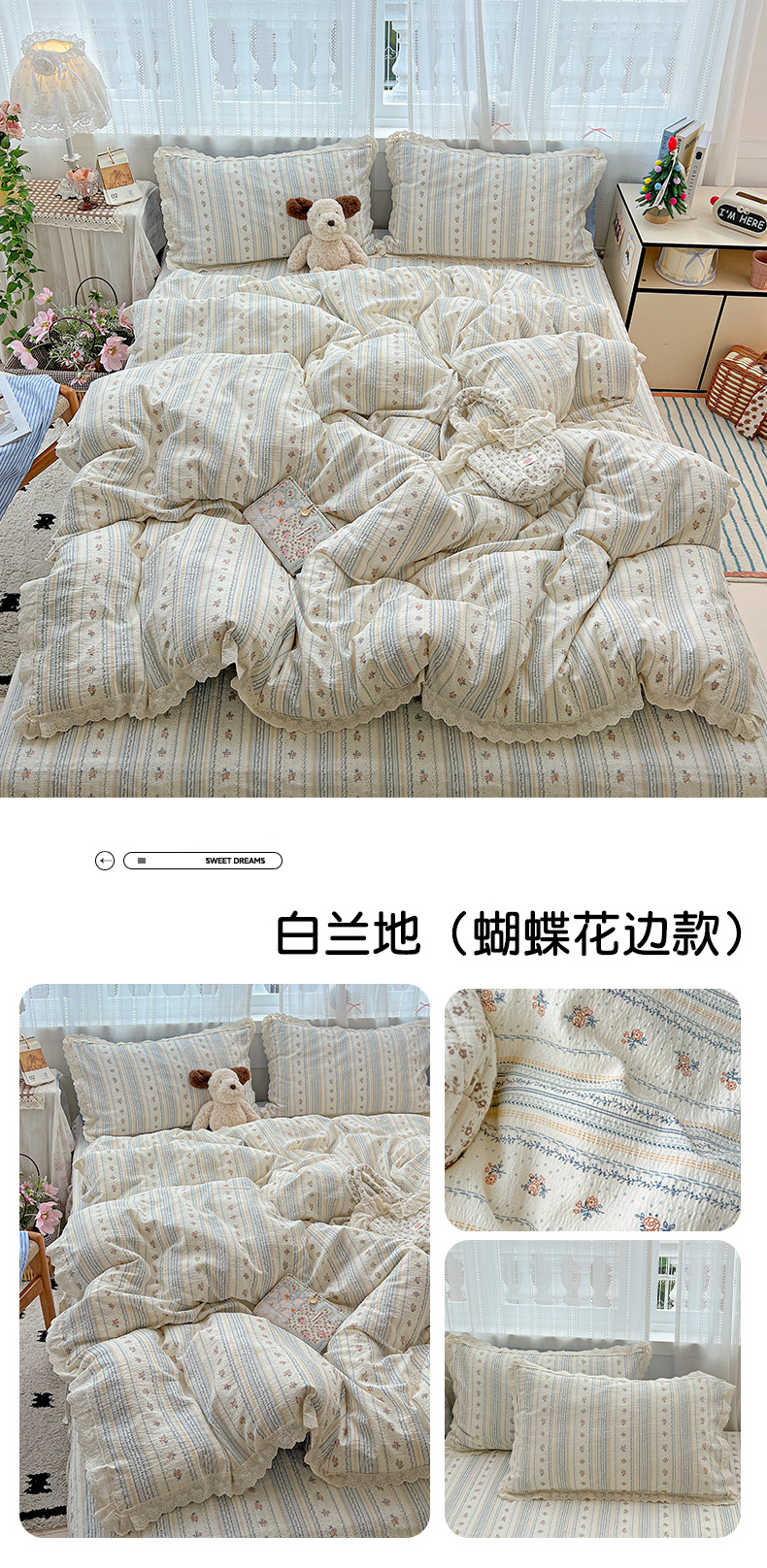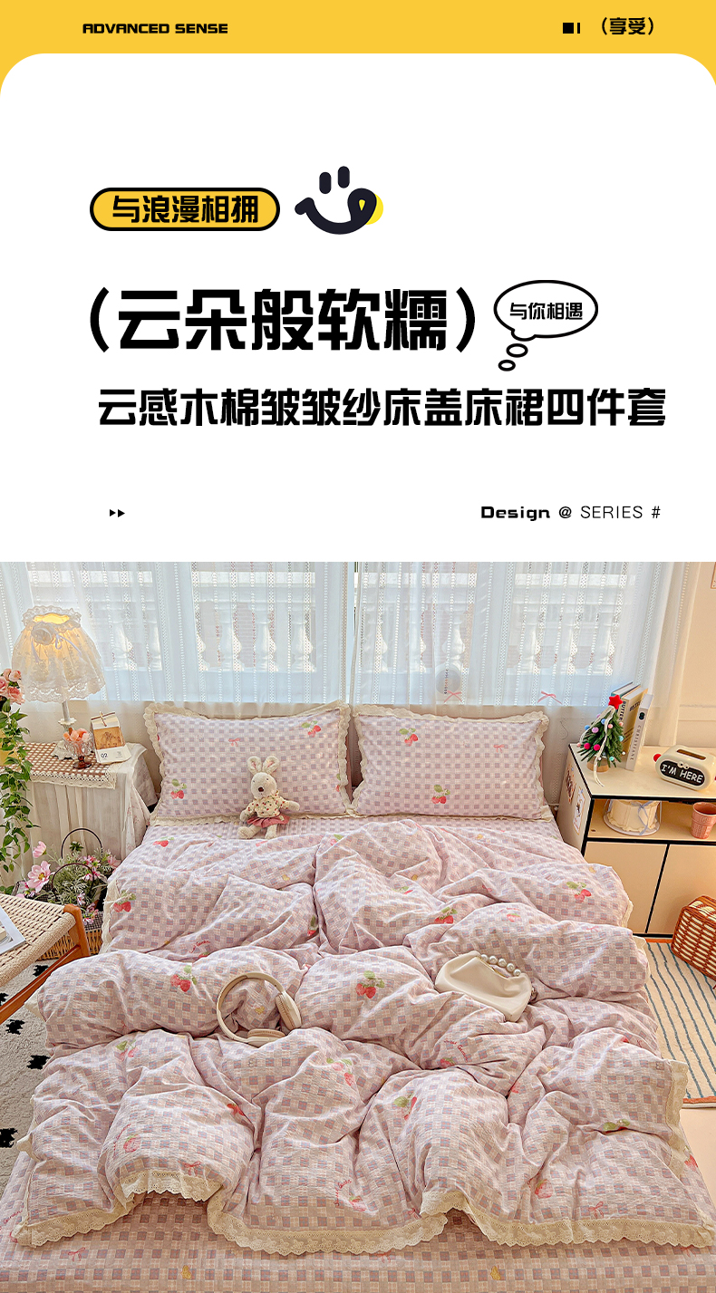 当前位置: 91家纺网 > 商品网购 > 床品套件 > 四件套 > 双层纱四件套 > 富米莱(原臻工厂) 2025新款全棉蝴蝶花边热销款韩式云感亲肤棉床盖床裙四件套 小资情调(蝴蝶花边款)