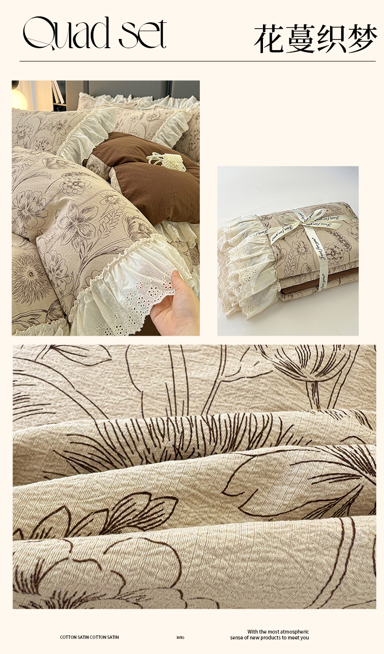 当前位置: 91家纺网 > 商品网购 > 床品套件 > 四件套 > 其它四件套 > 亨通家纺 2025新款原麻镂空宽花边四件套-花卉系列 一帘幽梦-蓝