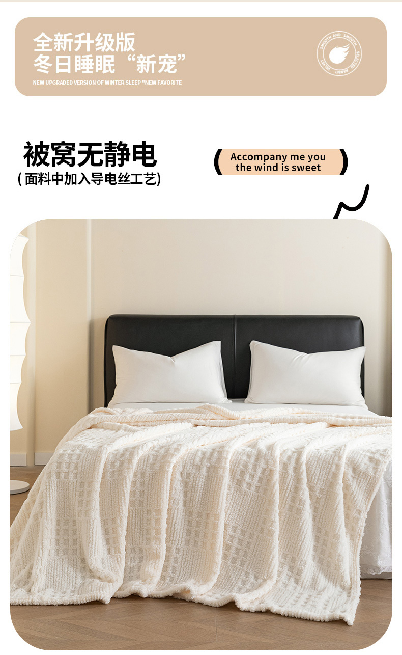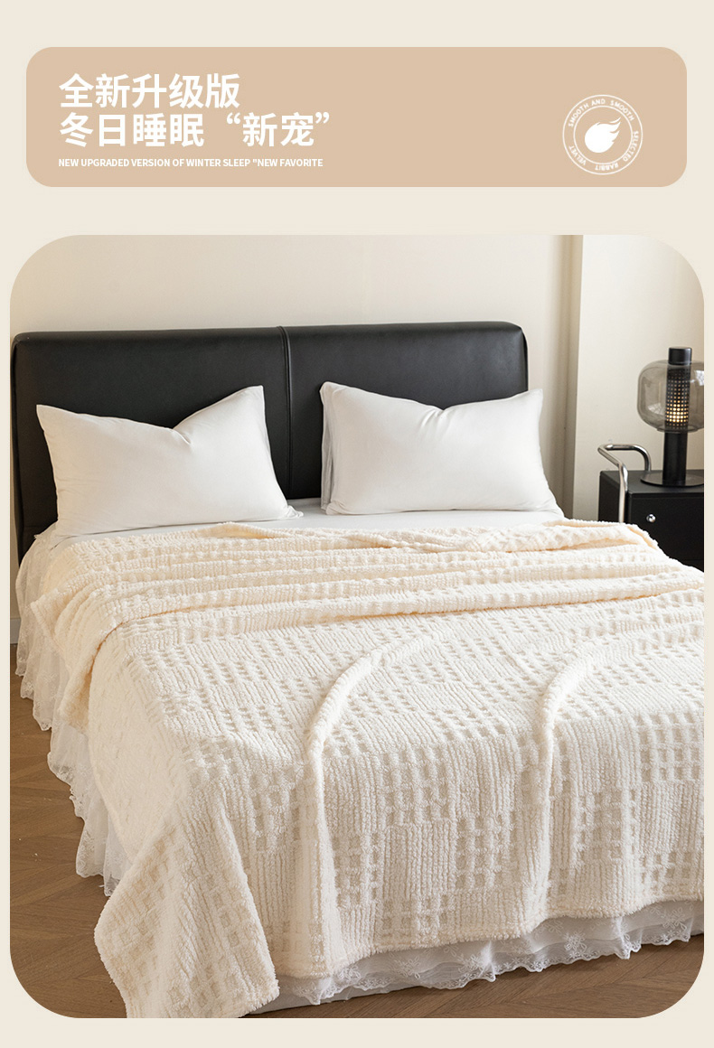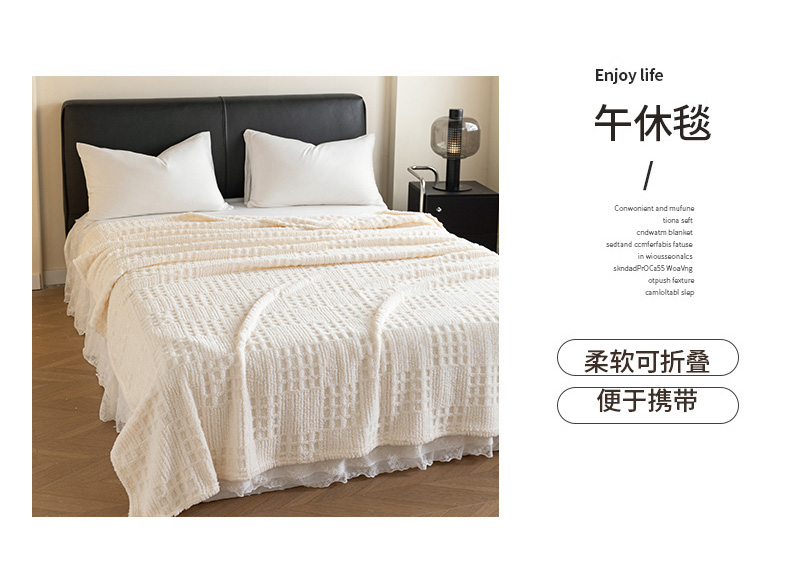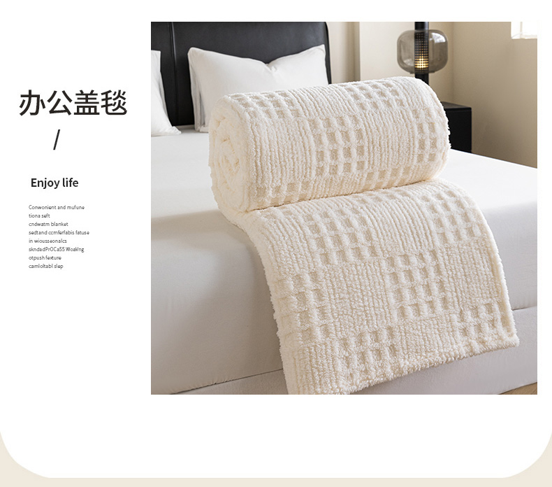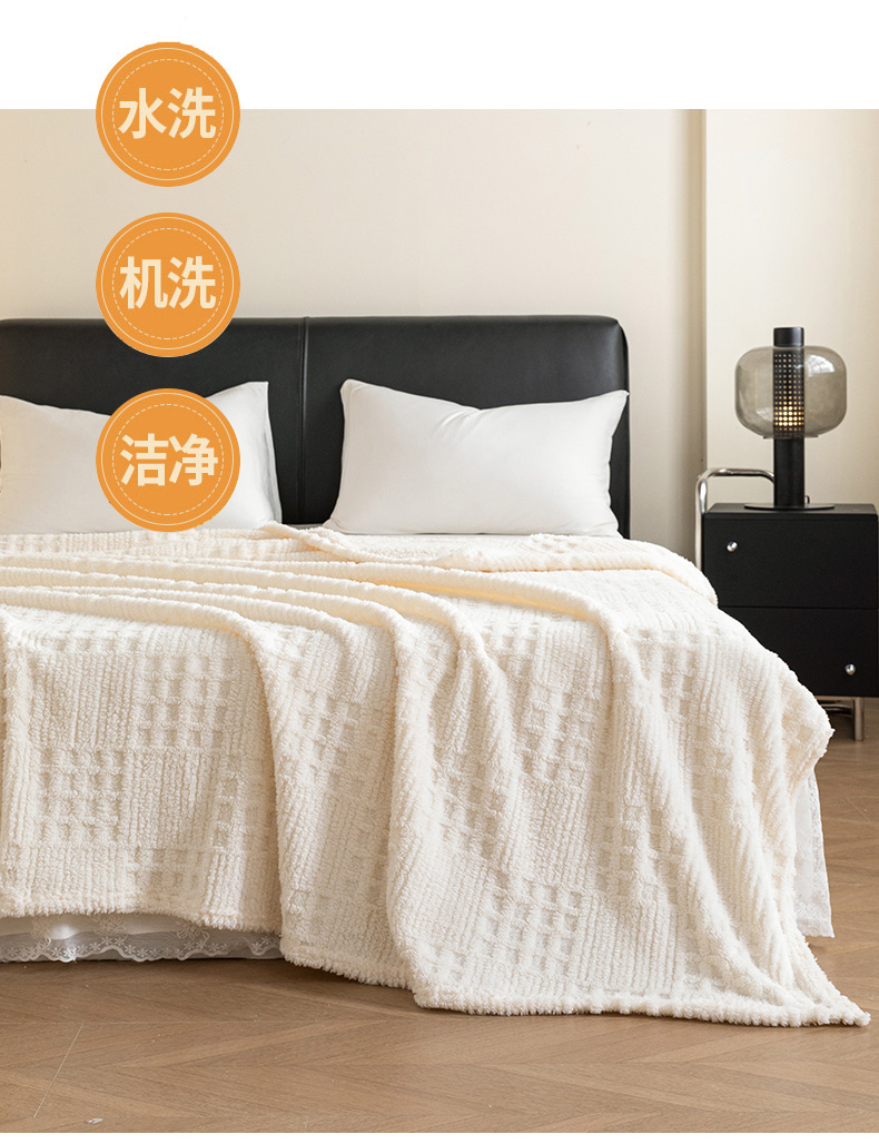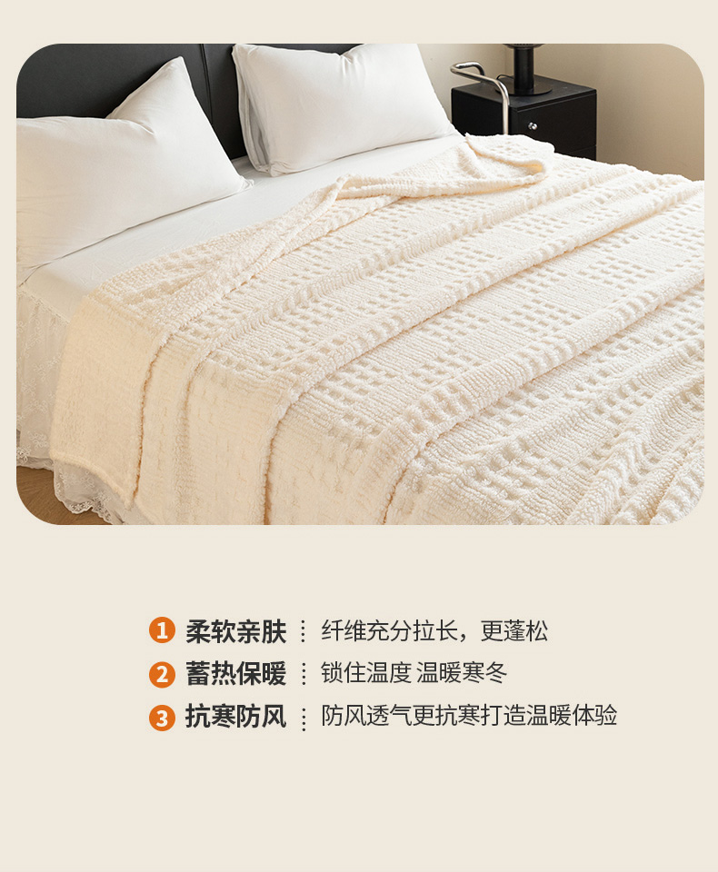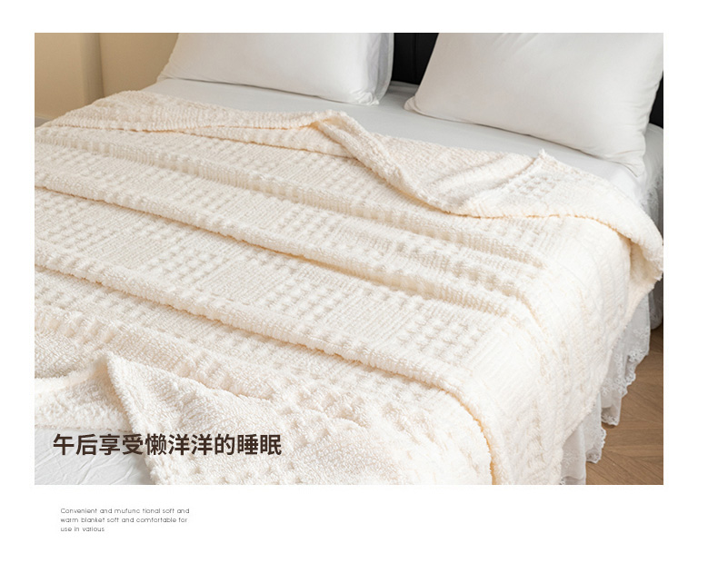 商品名称:梵心家纺 2025新款塔芙绒纯色华夫格提花毛毯多功能舒棉绒盖毯午睡毛毯-跨境电商 华夫格-米白