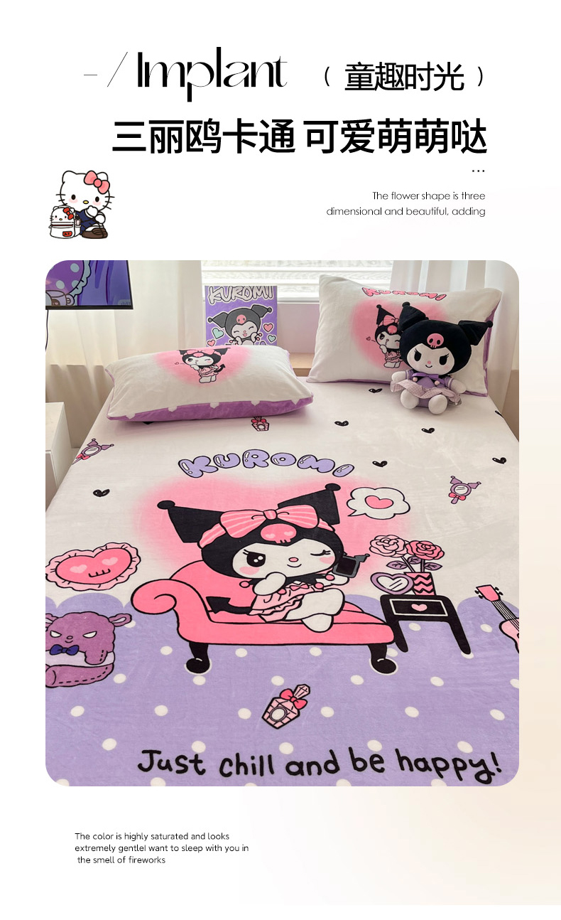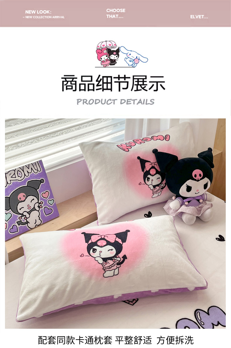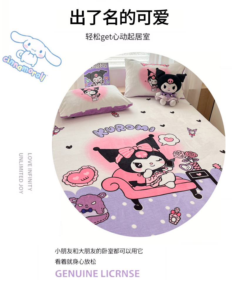 商品名称:暮思家居 2025新款正版授权三丽鸥大版牛奶绒数码印花单品床笠单件床笠(带标价格) 绒A版-美妆库洛米