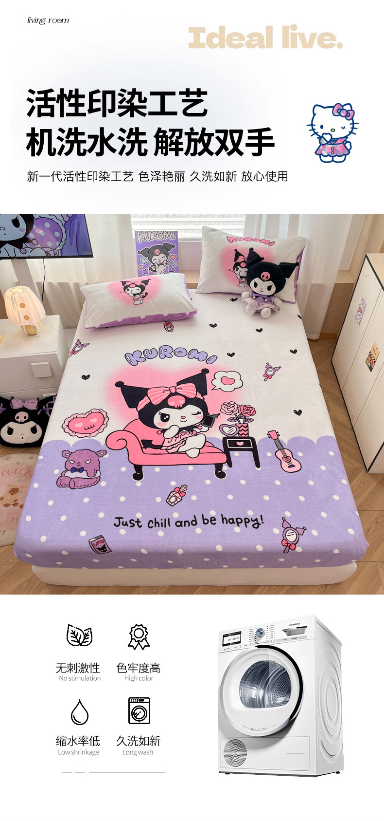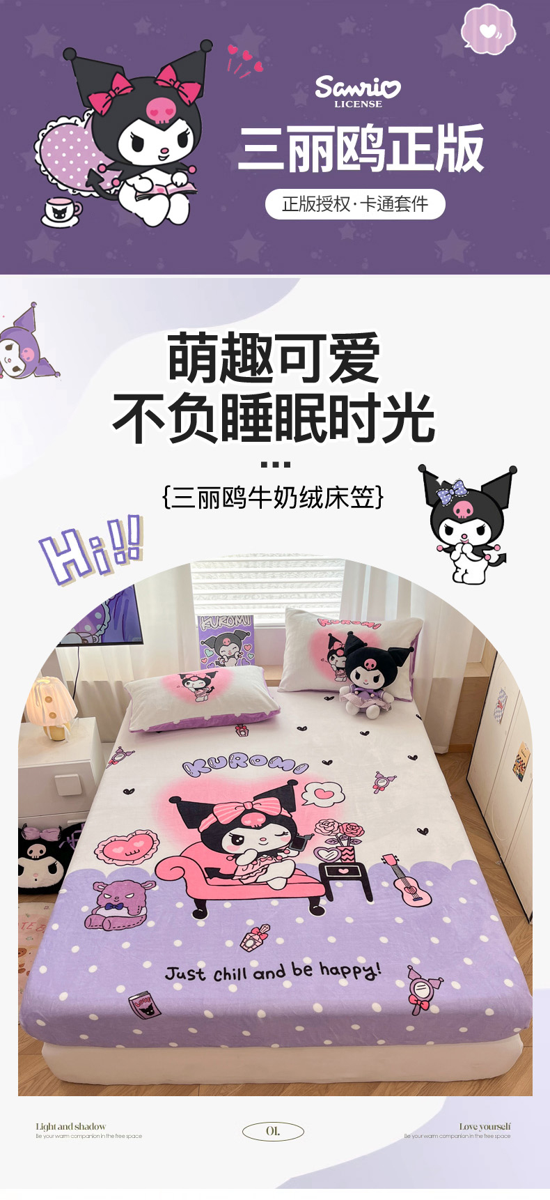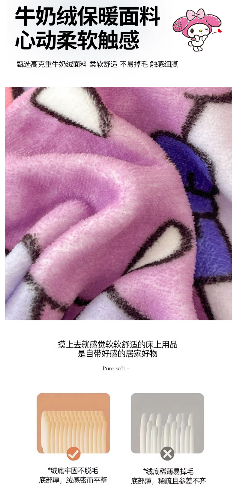 商品名称:暮思家居 2025新款正版授权三丽鸥大版牛奶绒数码印花单品床笠单件床笠(带标价格) 绒A版-美妆库洛米