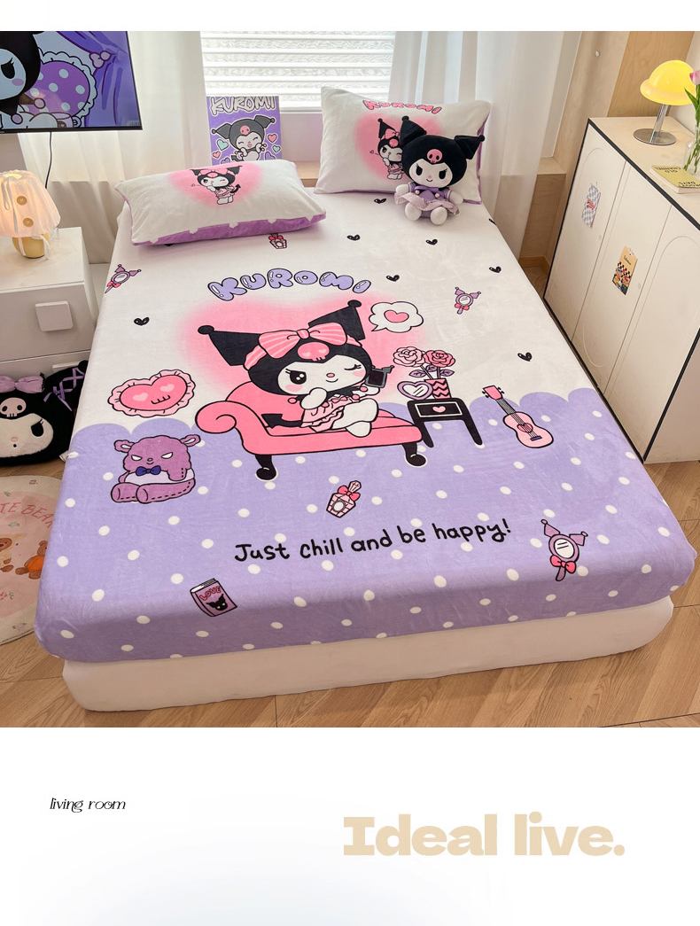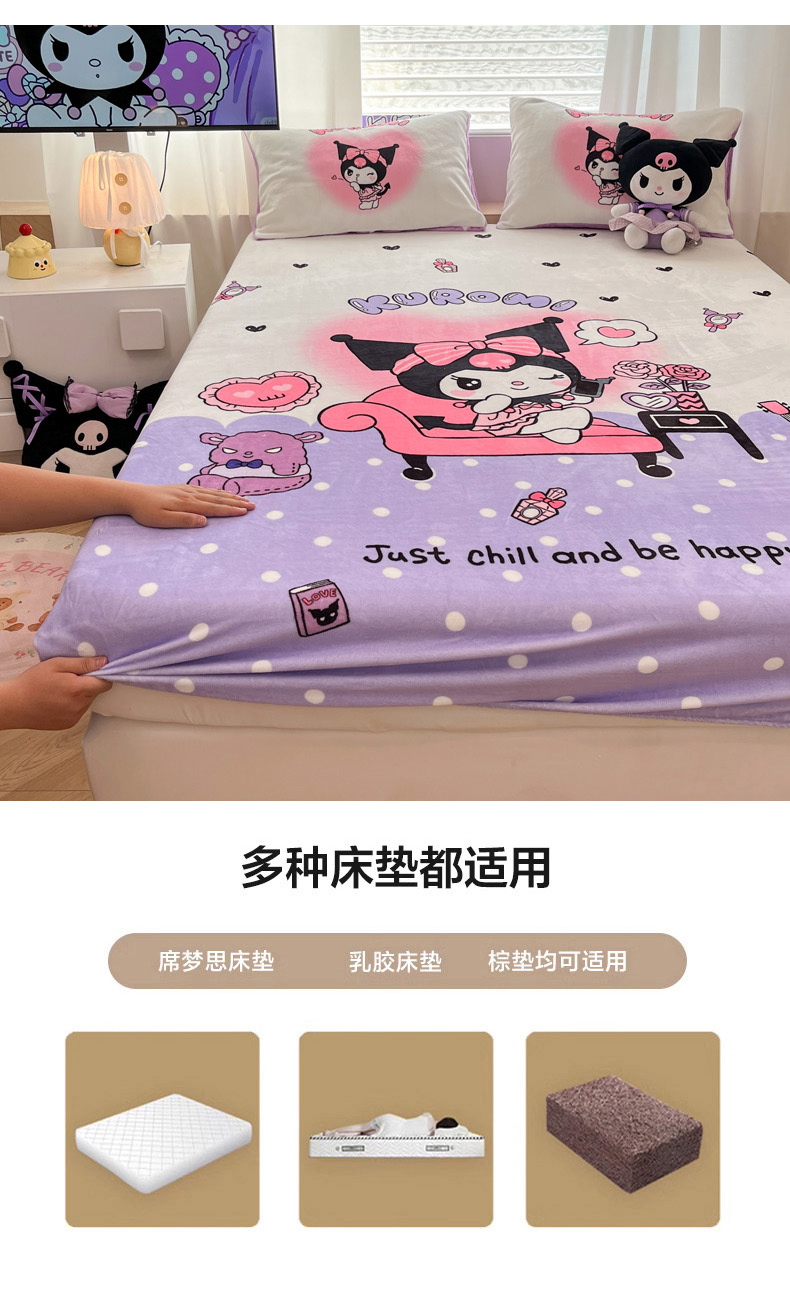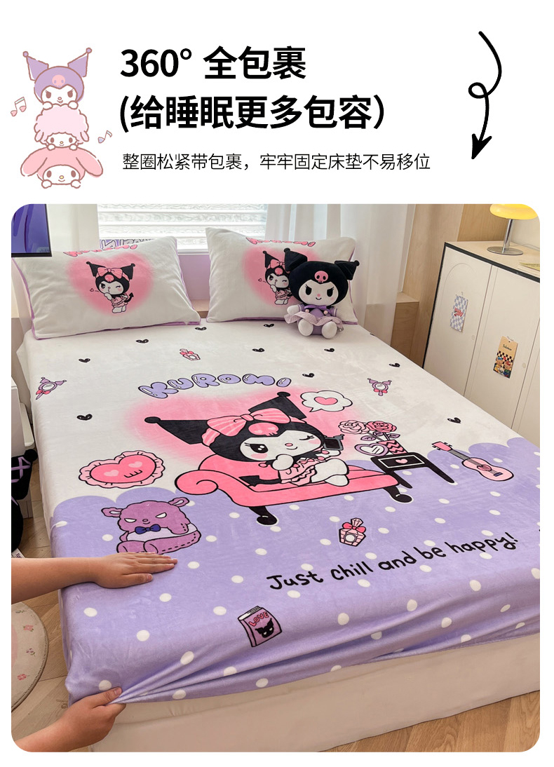 暮思家居 2025新款正版授权三丽鸥大版牛奶绒数码印花单品床笠单件床笠(带标价格) 绒A版-美妆库洛米