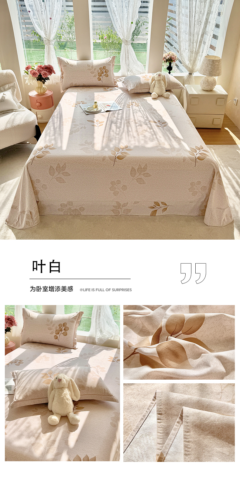 180x230cm单床单+枕套一对