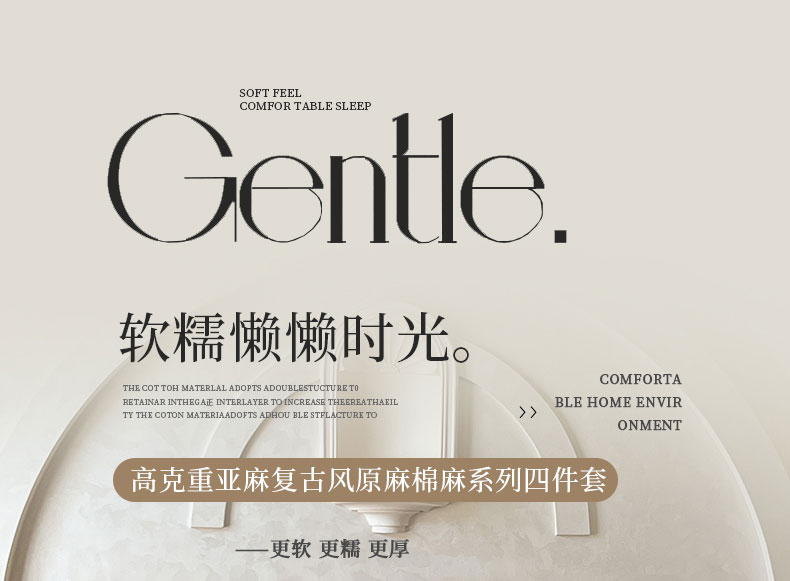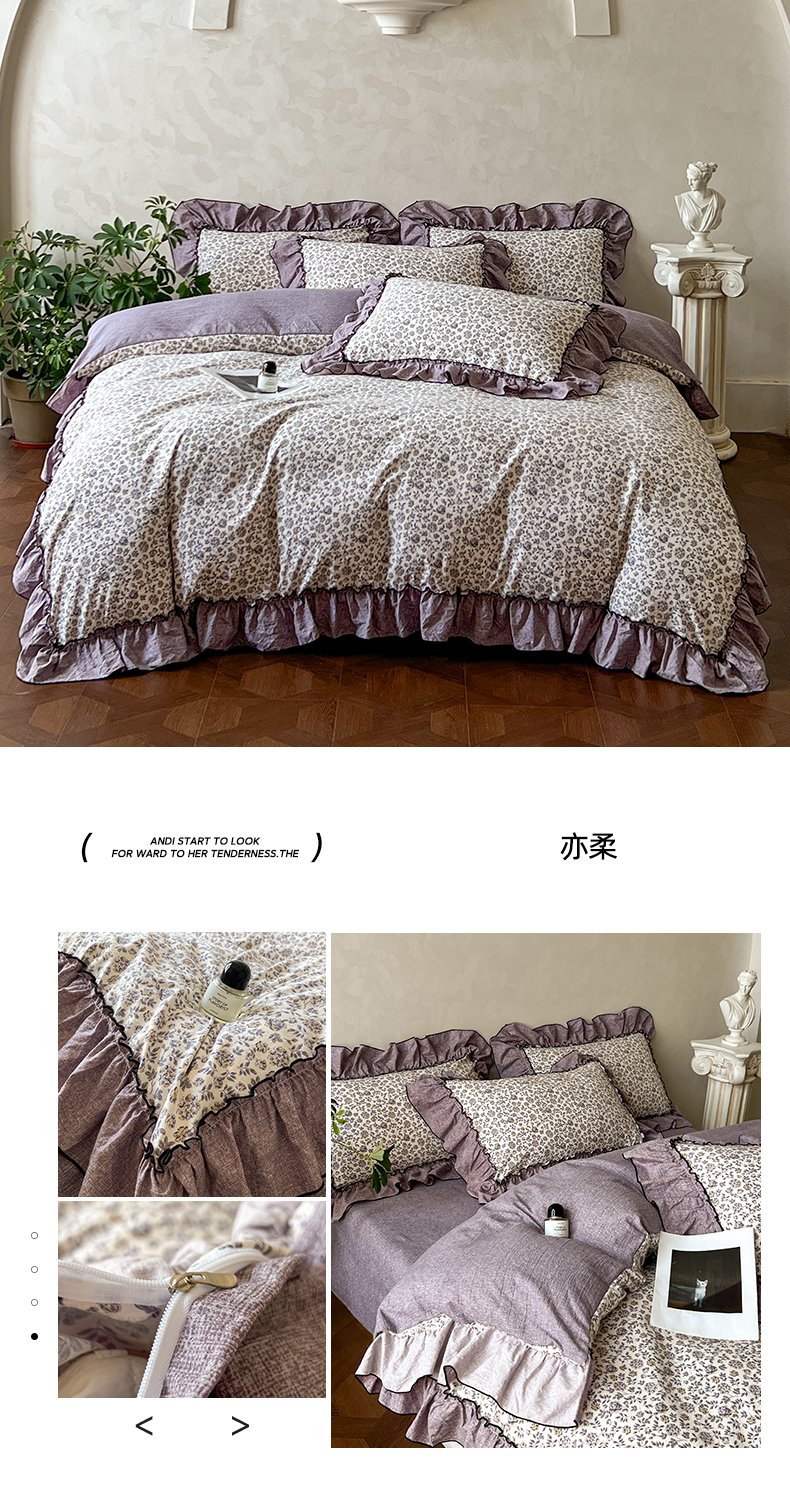 商品名称:乐沐家纺 2025新款A类高克重亚麻复古风原麻棉麻系列四件套 嫣然