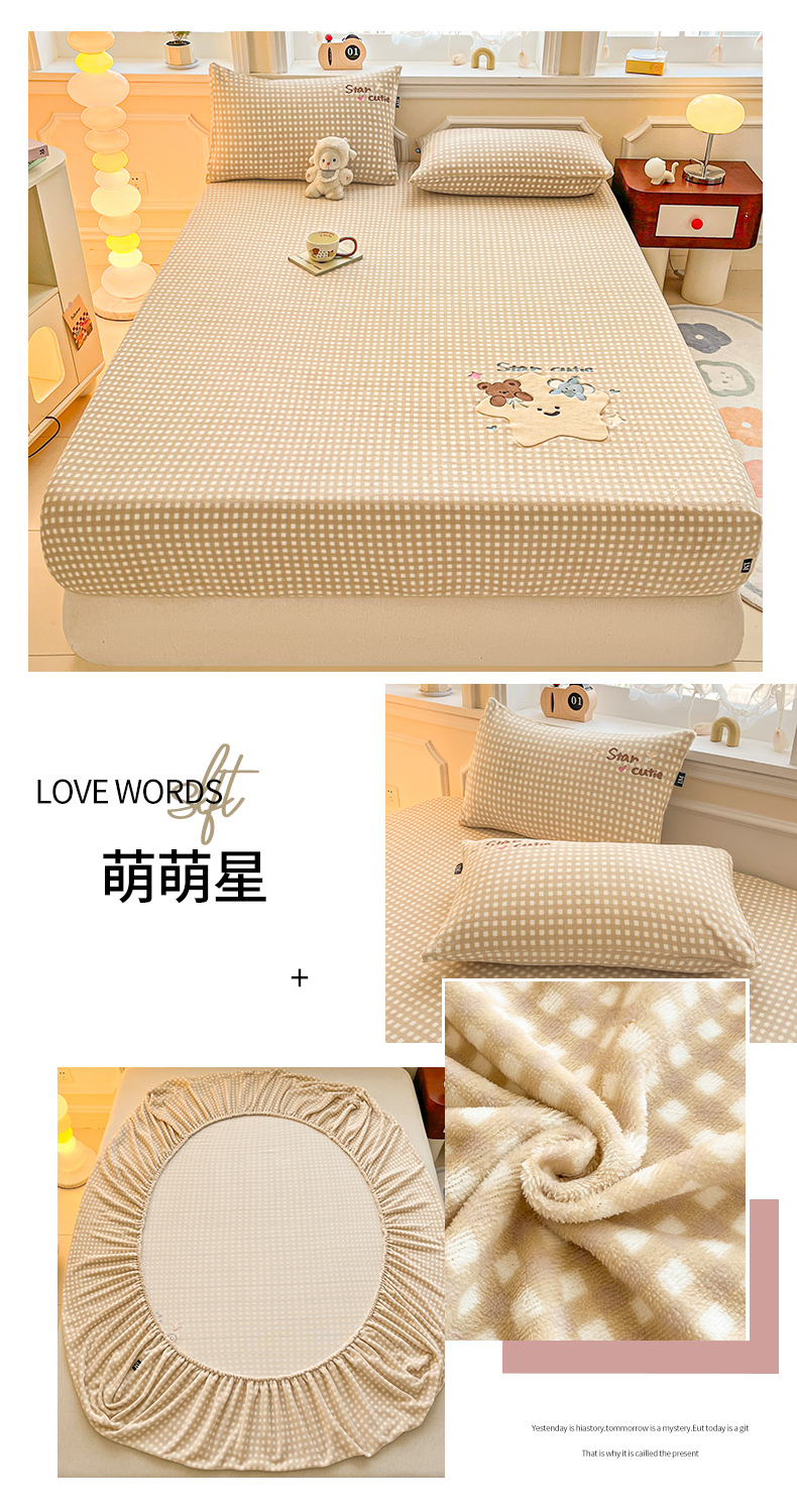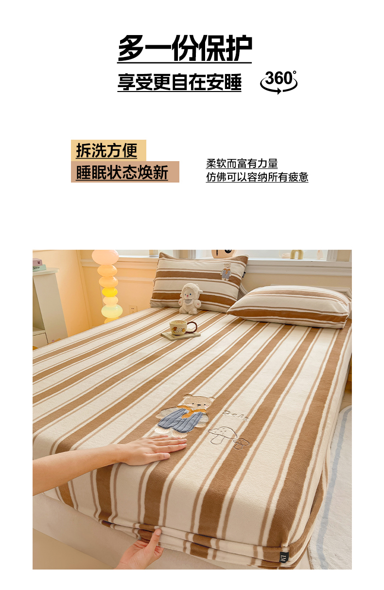 (总)乐美家纺 2025新款A类高克重刺绣牛奶绒床笠三件套,好朋狗,森林乐队,熊熊派对,小熊奶盖,萌宠派对,萝莉猫