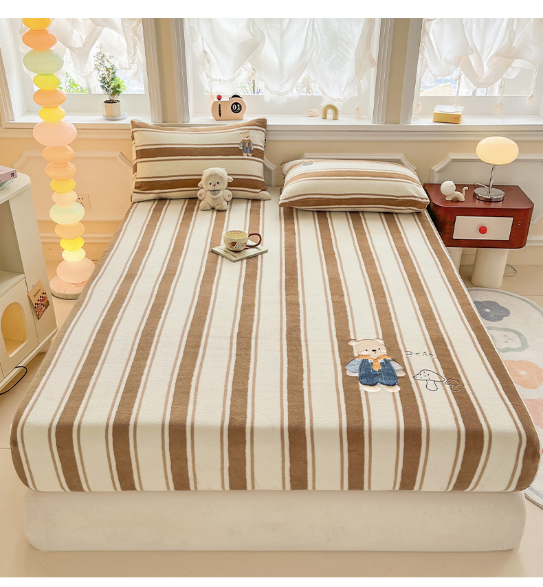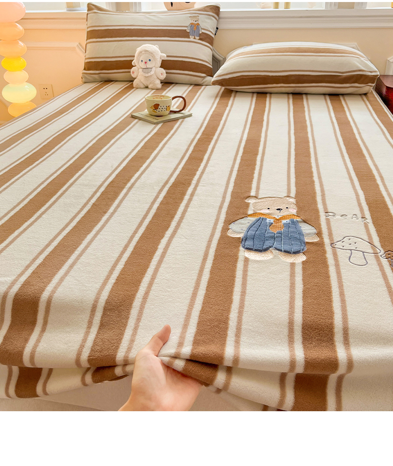 乐美家纺 2025新款A类高克重贴布绣牛奶绒床笠三件套 蘑菇熊