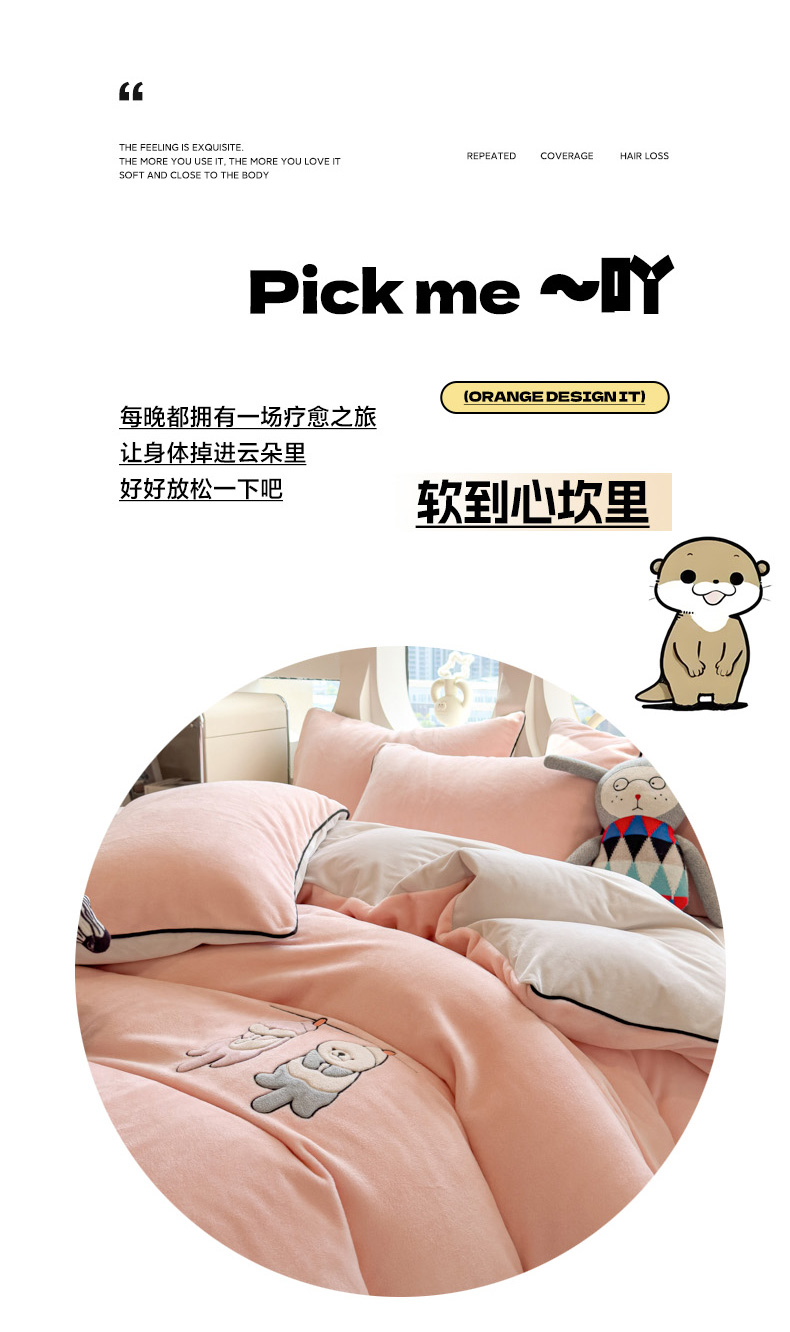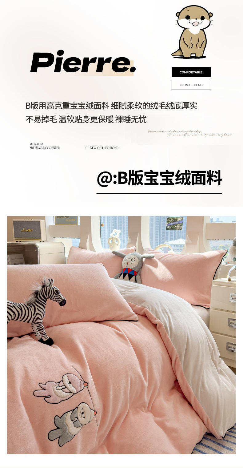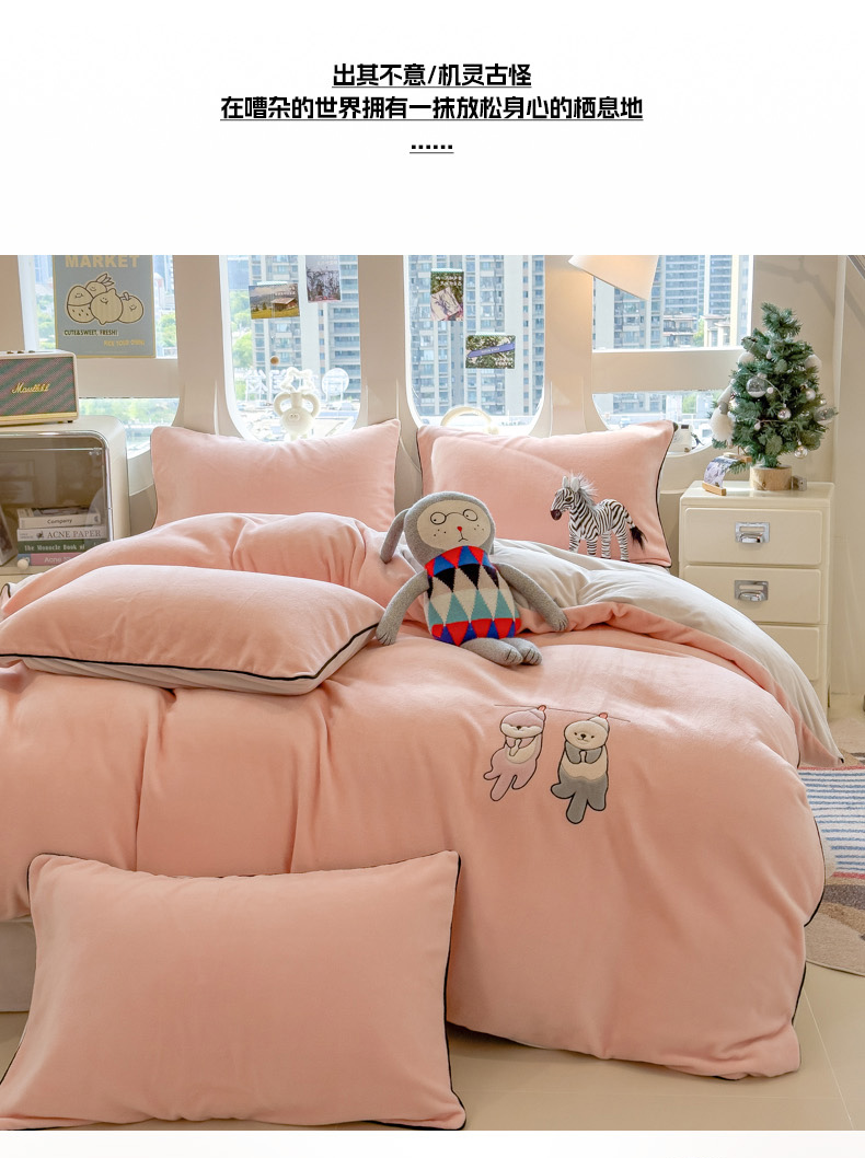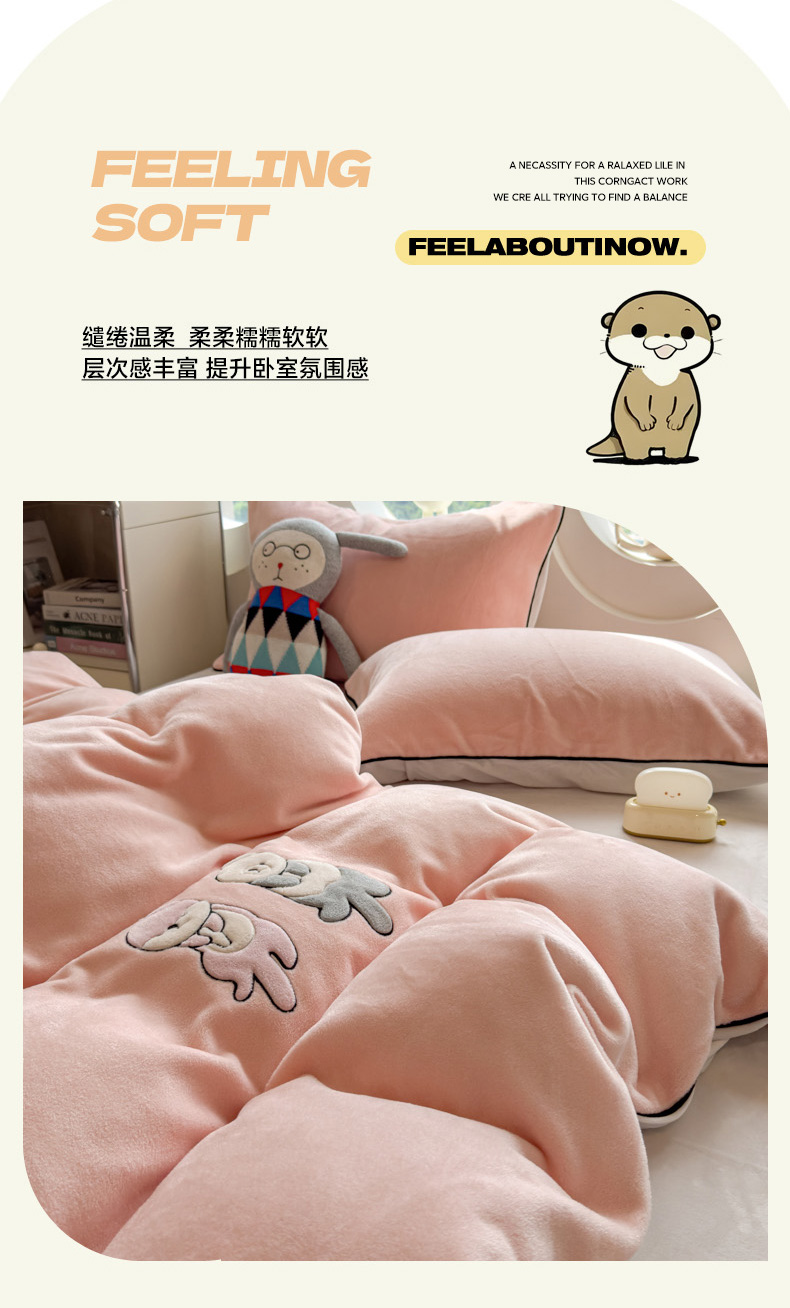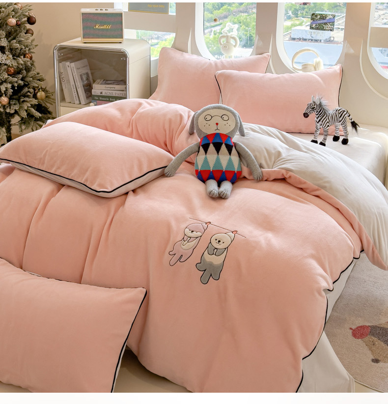 当前位置: 91家纺网 > 商品网购 > 床品套件 > 四件套 > 其它四件套 > 印季家纺 2025新款小两口海獭绒贴布绣四件套 小两口-玉粉-粉灰