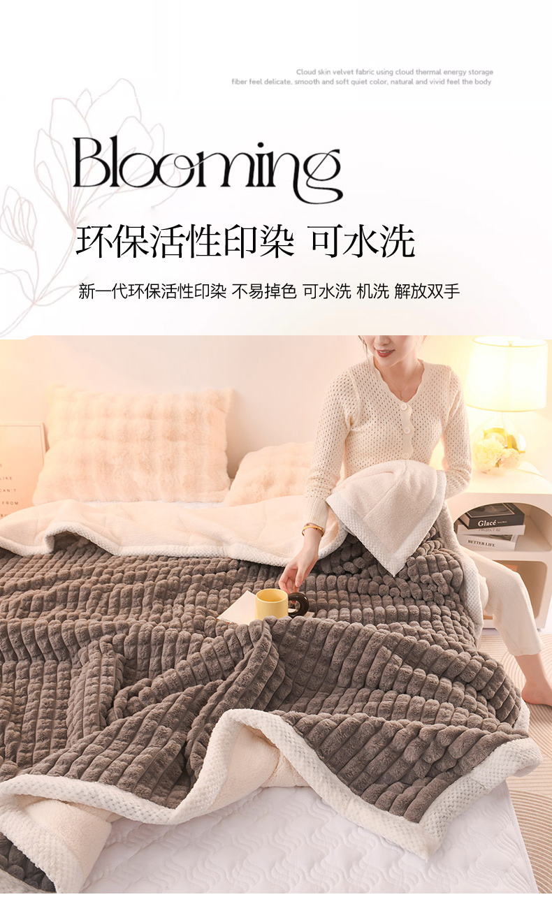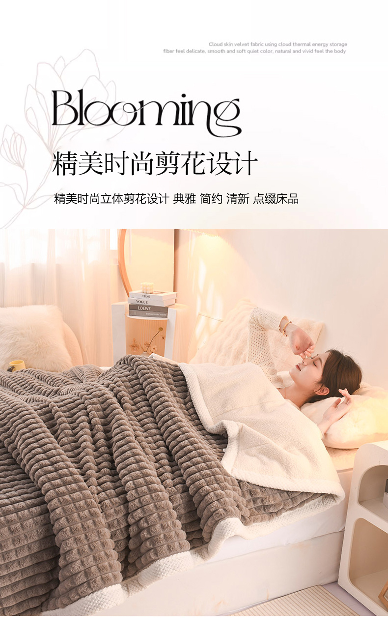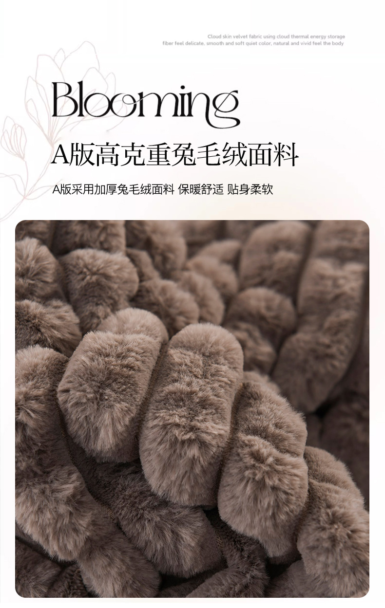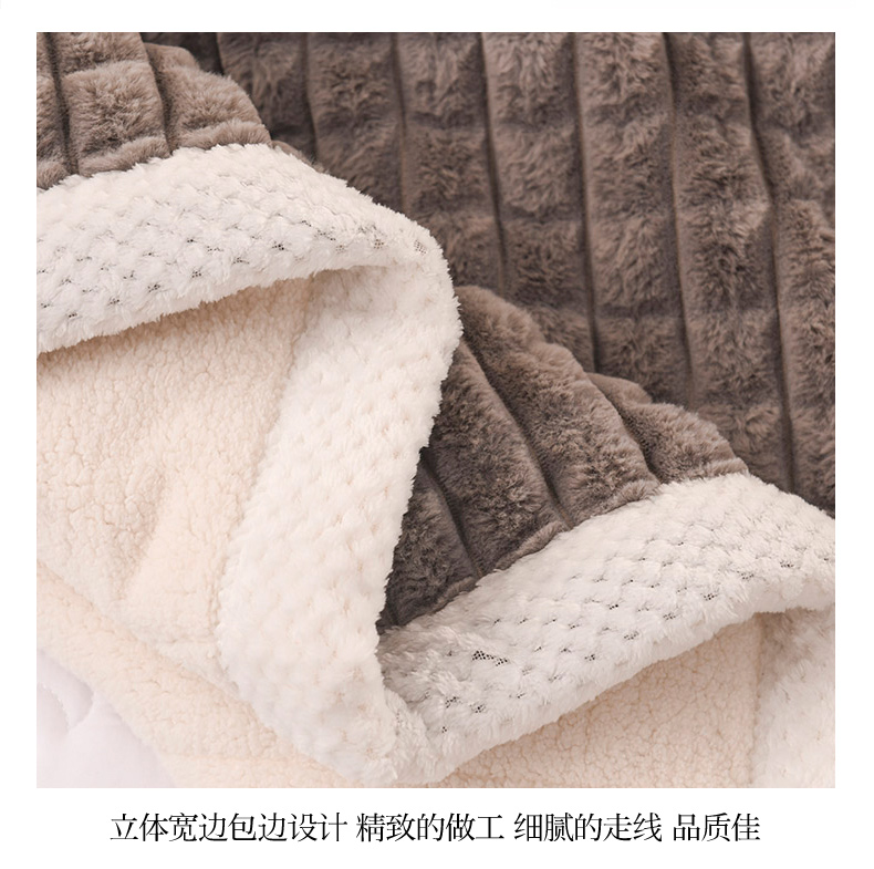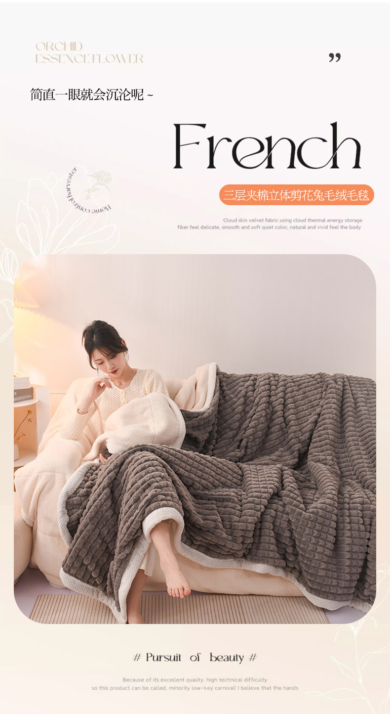印季家纺 2025新款三层夹棉立体剪花兔毛绒毛毯毯子多功能盖毯-亮场景 深灰