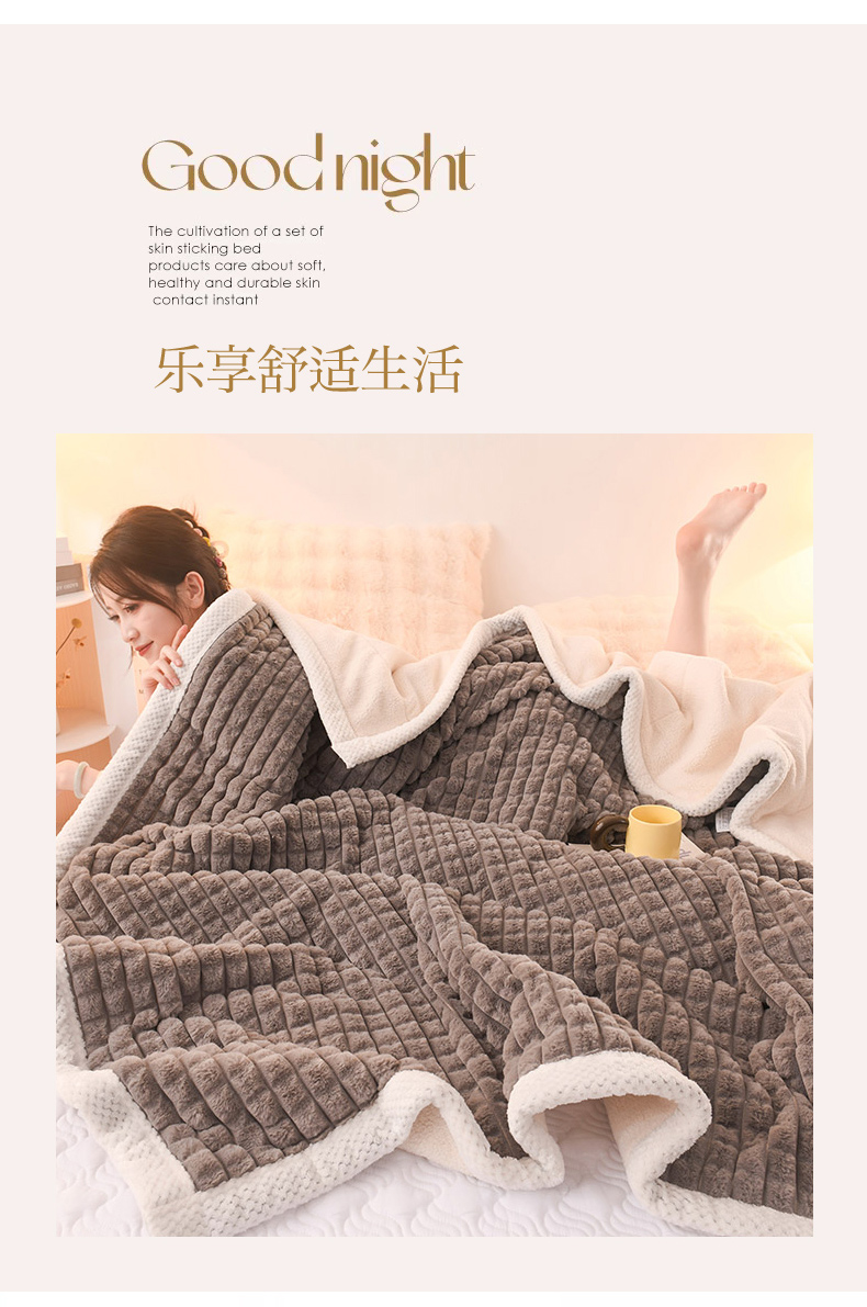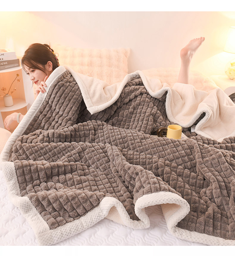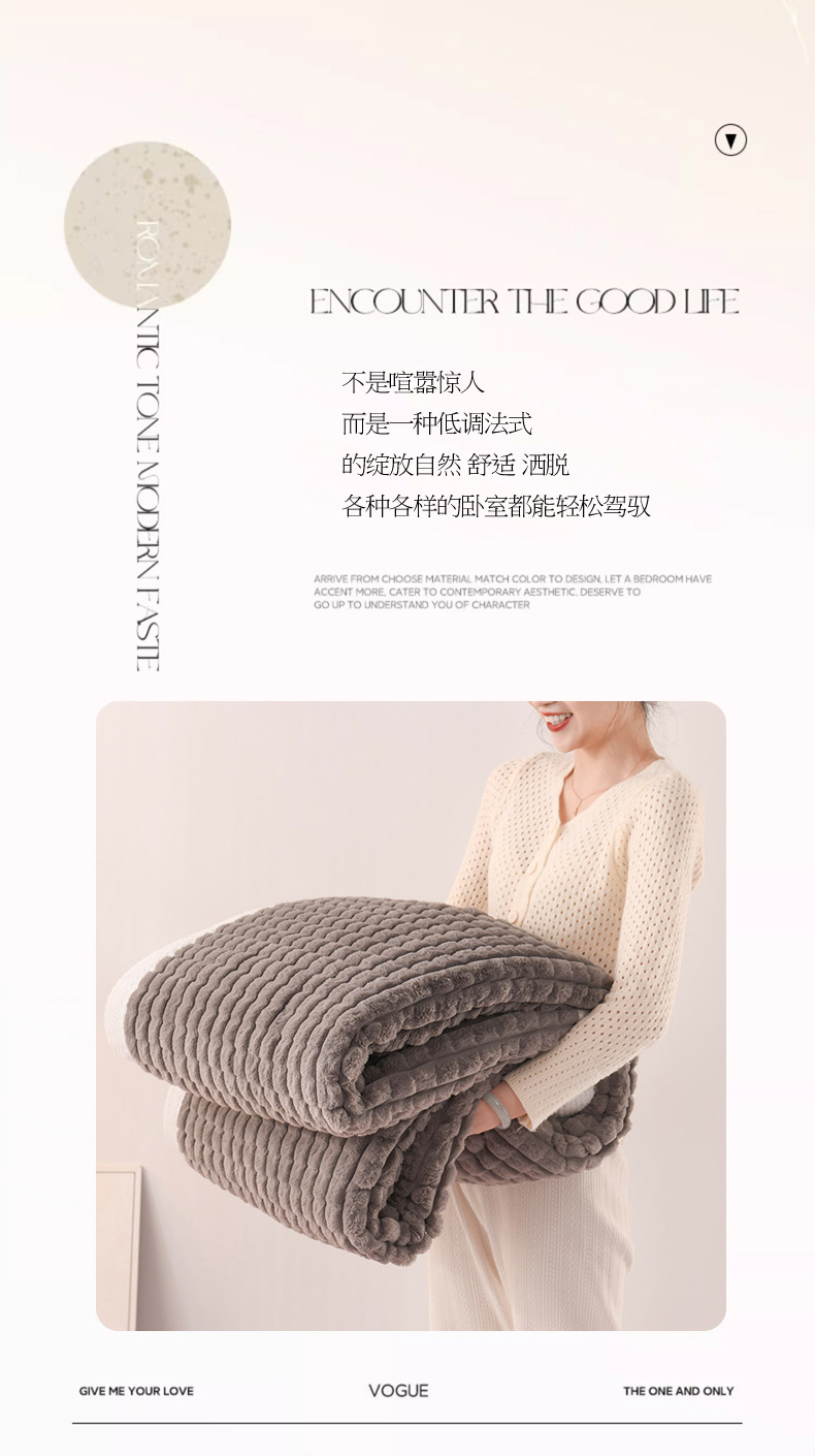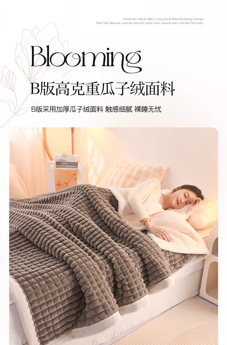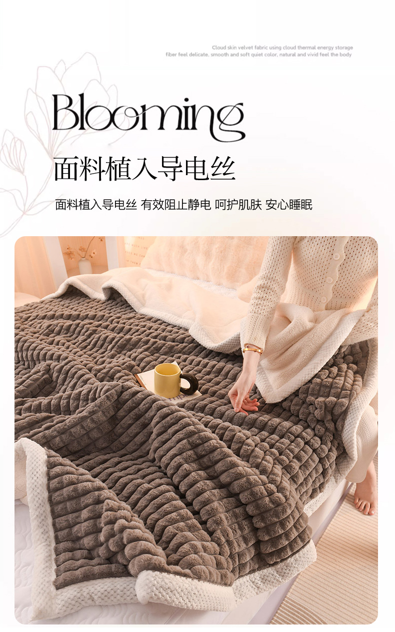 印季家纺 2025新款三层夹棉立体剪花兔毛绒毛毯毯子多功能盖毯-亮场景 深灰