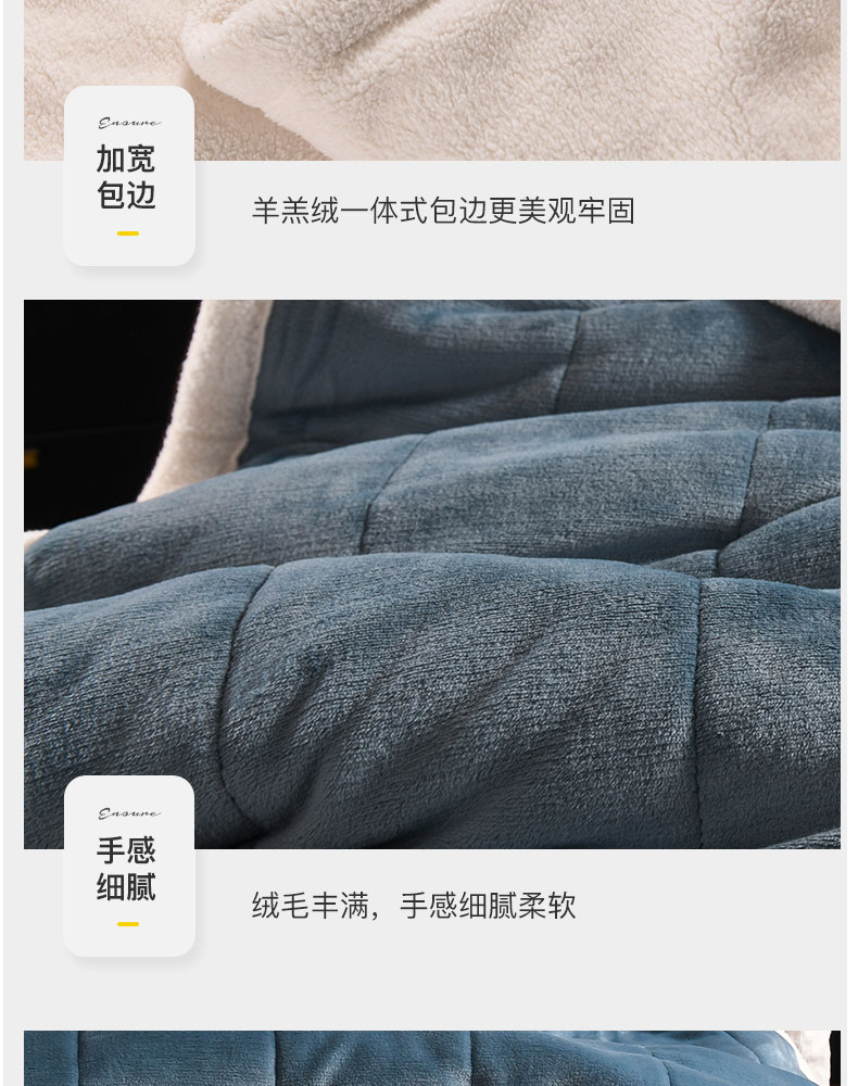 商品名称:印季家纺 2025秋冬新款三层夹棉加厚复合羊羔绒毛毯毯子多功能盖毯 墨绿+白