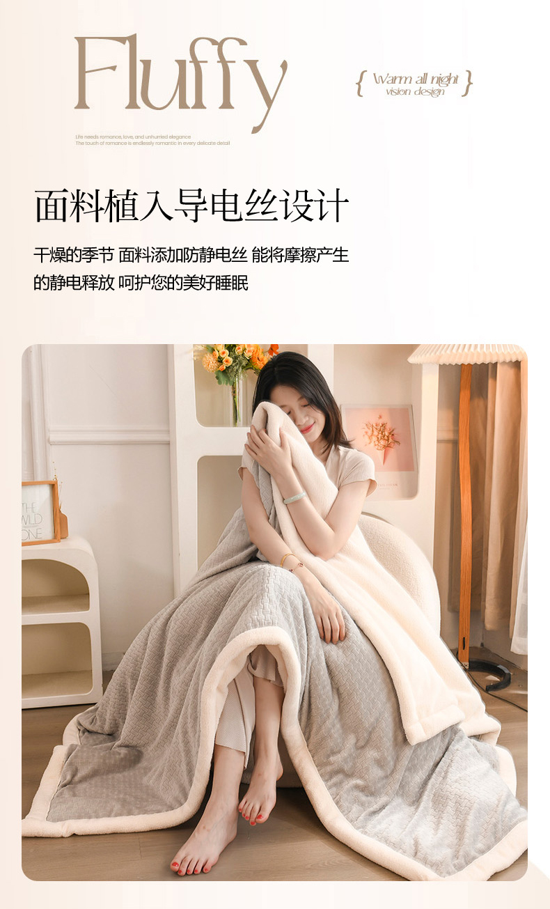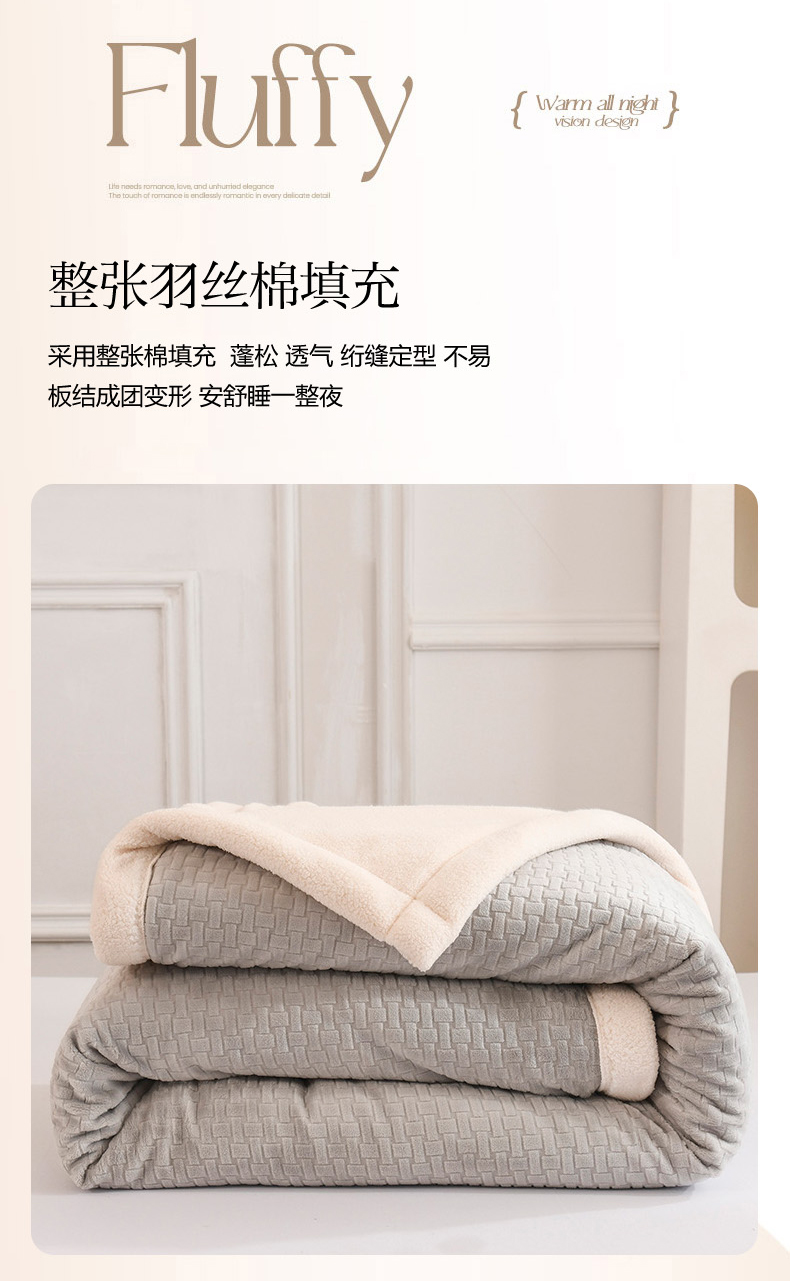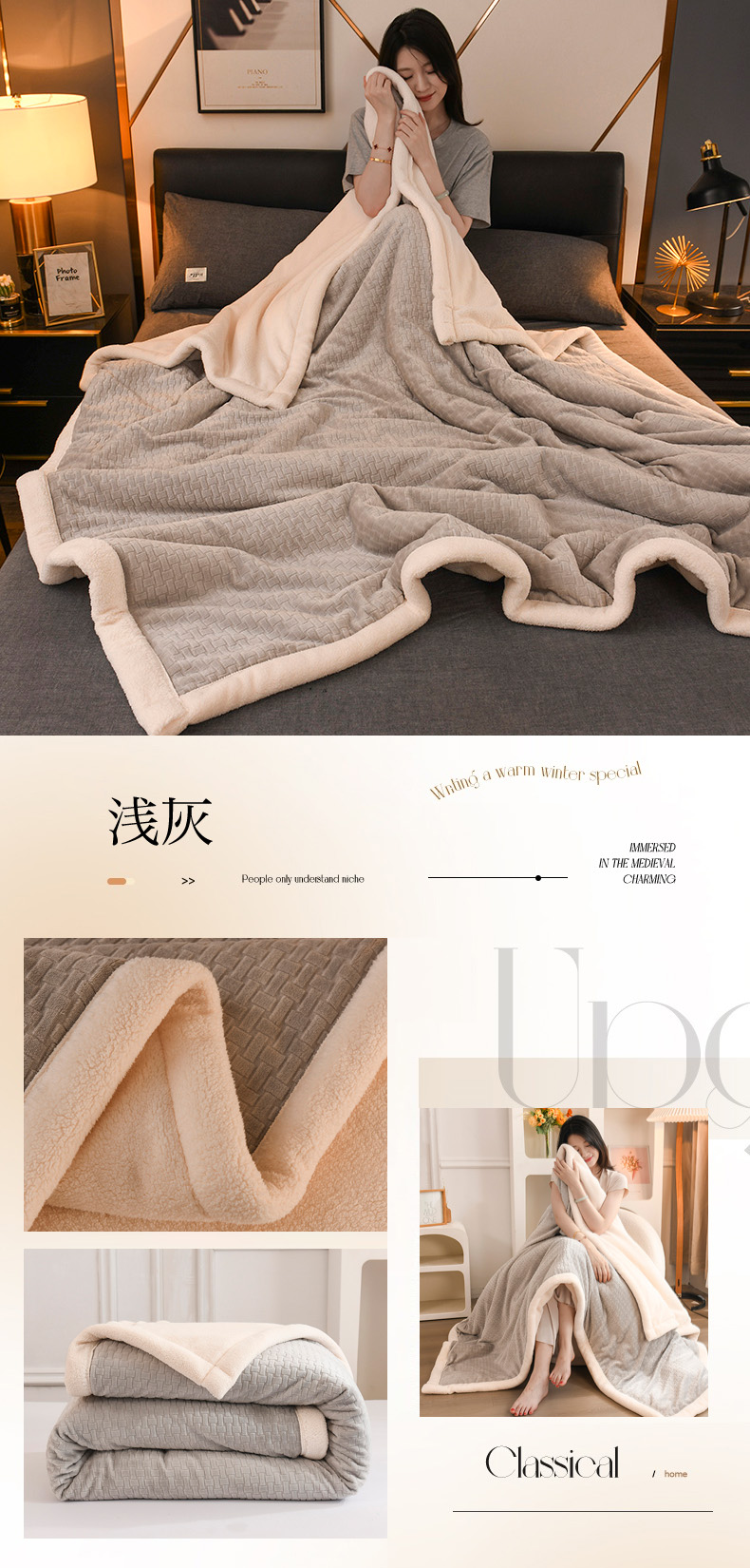 印季家纺 2025秋冬新款三层夹棉-蝴蝶扣毛毯毯子多功能盖毯 蝴蝶扣-浅灰