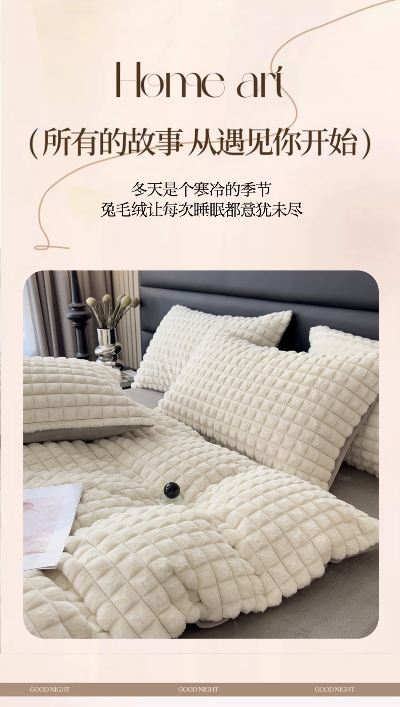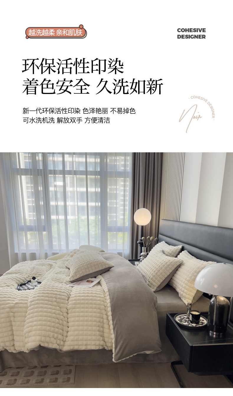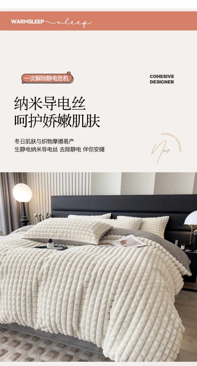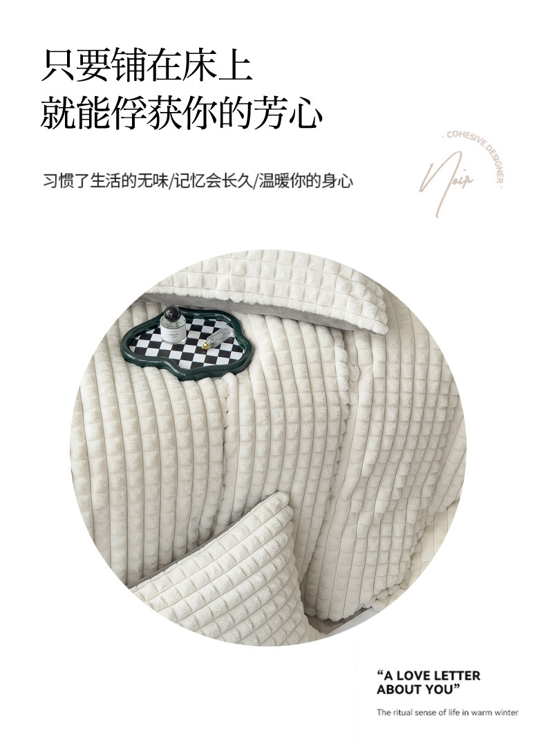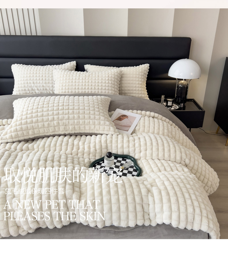 当前位置: 91家纺网 > 商品网购 > 床品套件 > 四件套 > 兔毛绒四件套 > 印季家纺 2025新款立体剪花格子兔毛绒四件套 奶白-灰