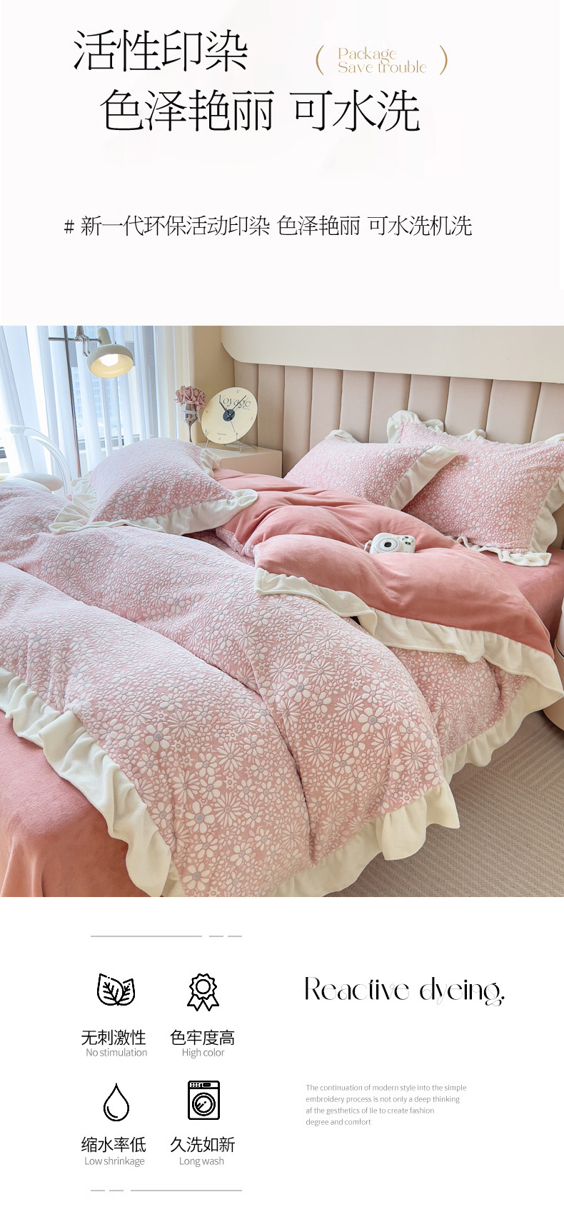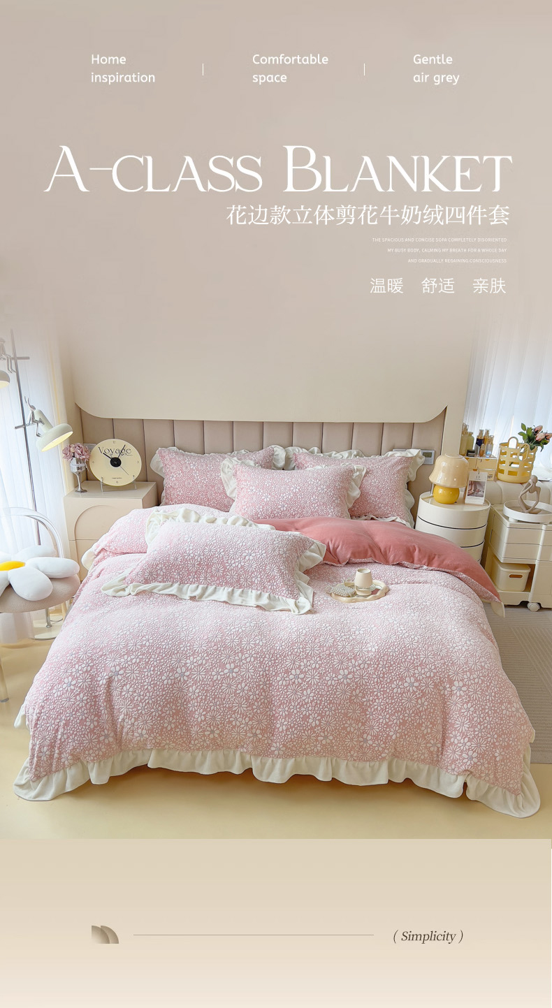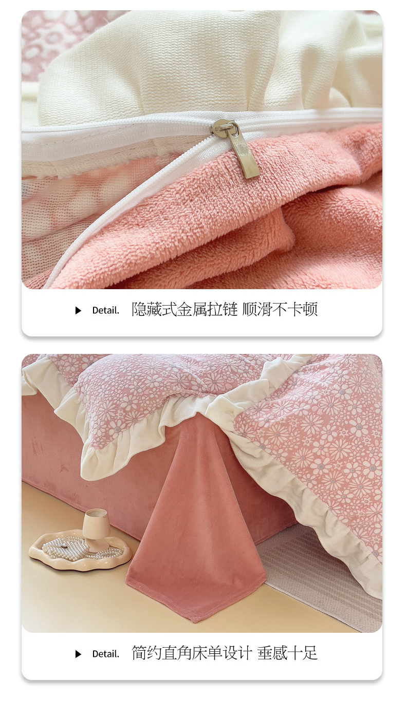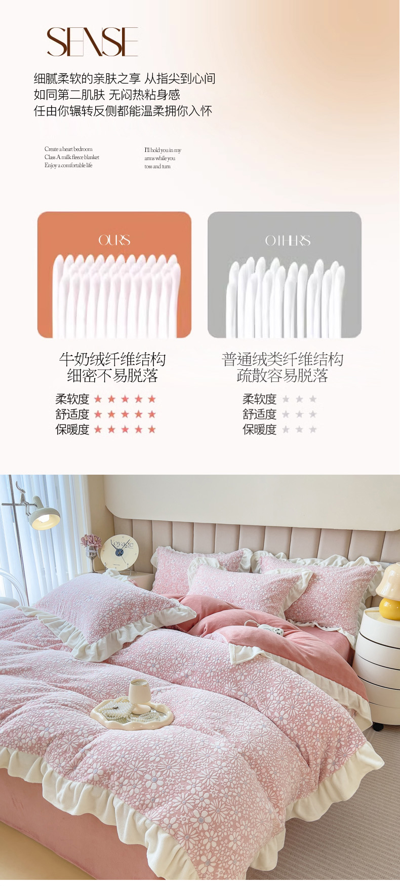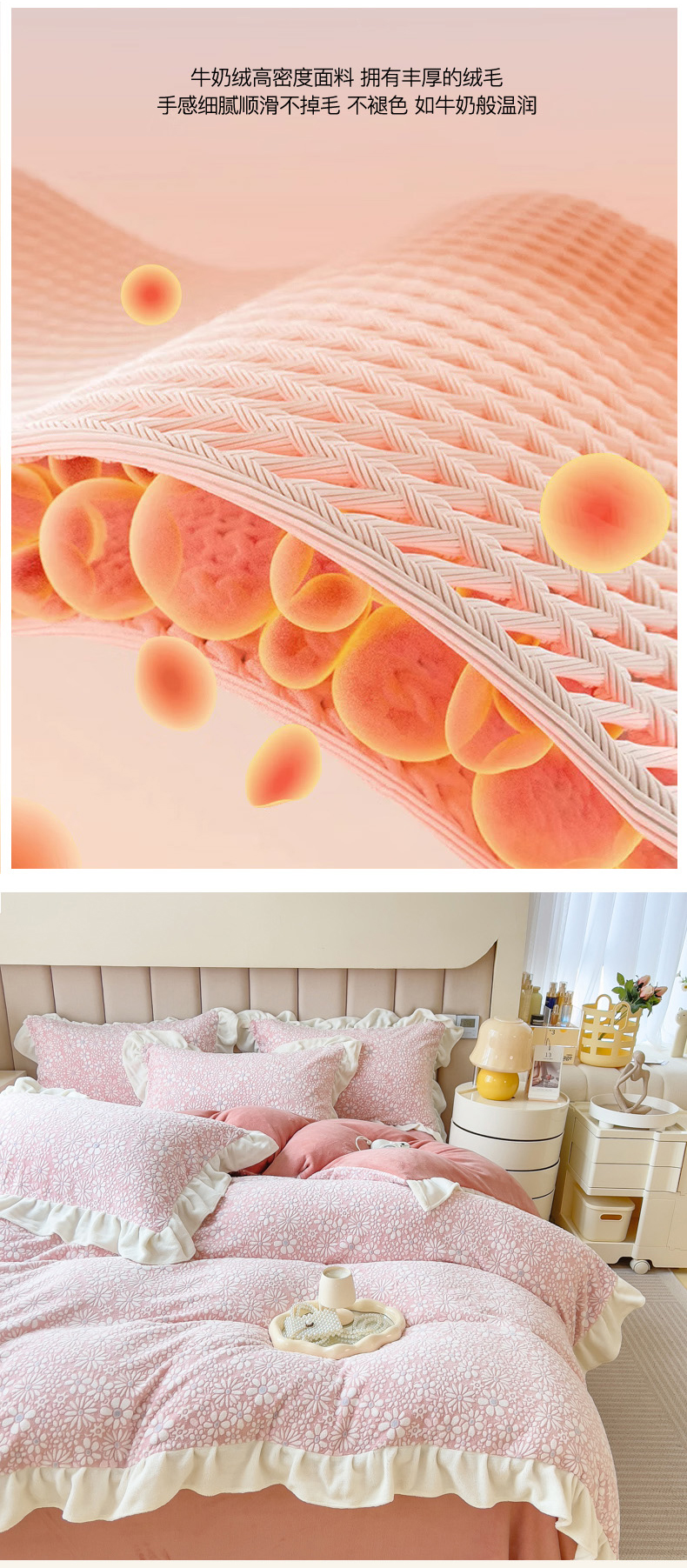当前位置: 91家纺网 > 商品网购 > 床品套件 > 四件套 > 牛奶绒四件套 > 印季家纺 2025新款花边款立体剪花牛奶绒四件套 豆沙