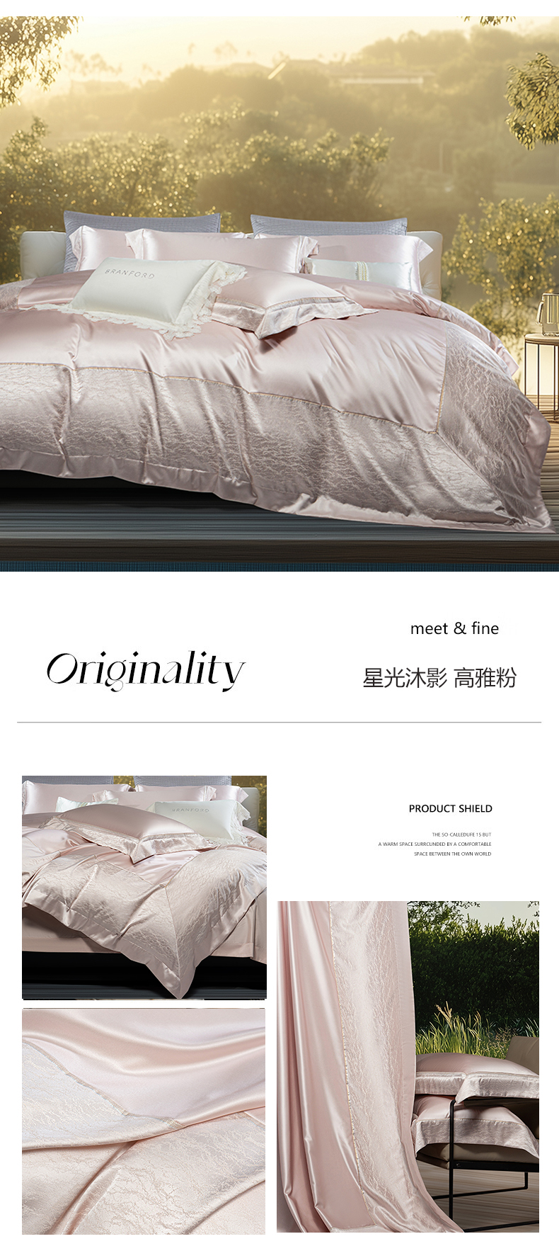 商品名称:诗黛尔 2025秋冬新款高精密提花长绒棉纯棉四件套-星光沐影 星光沐影-香槟金